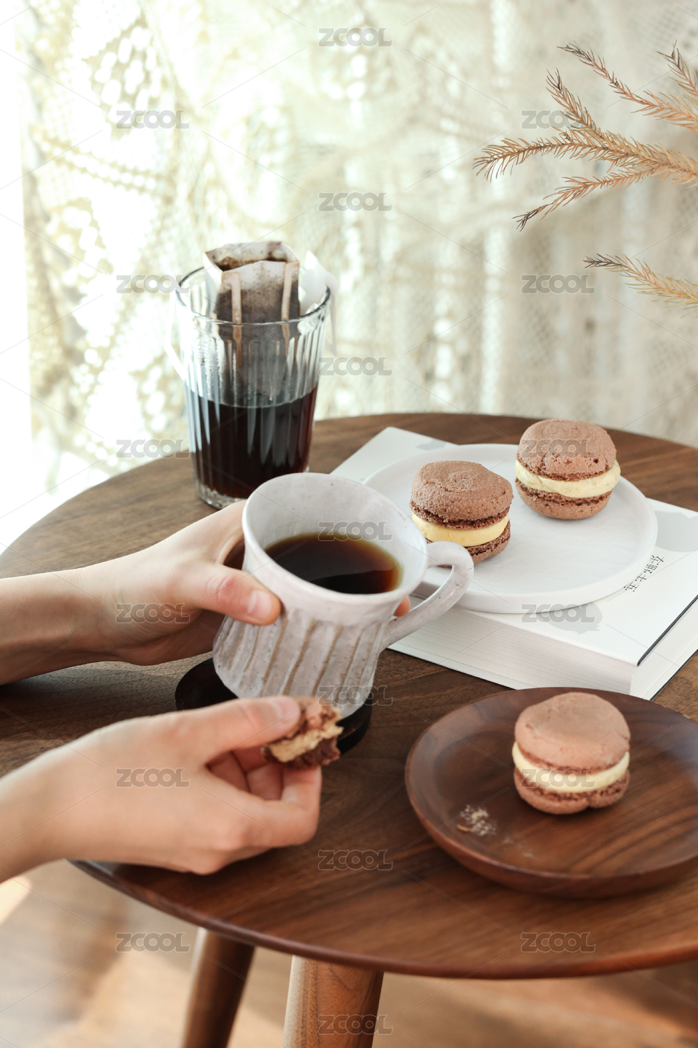 咖啡和马卡龙下午茶