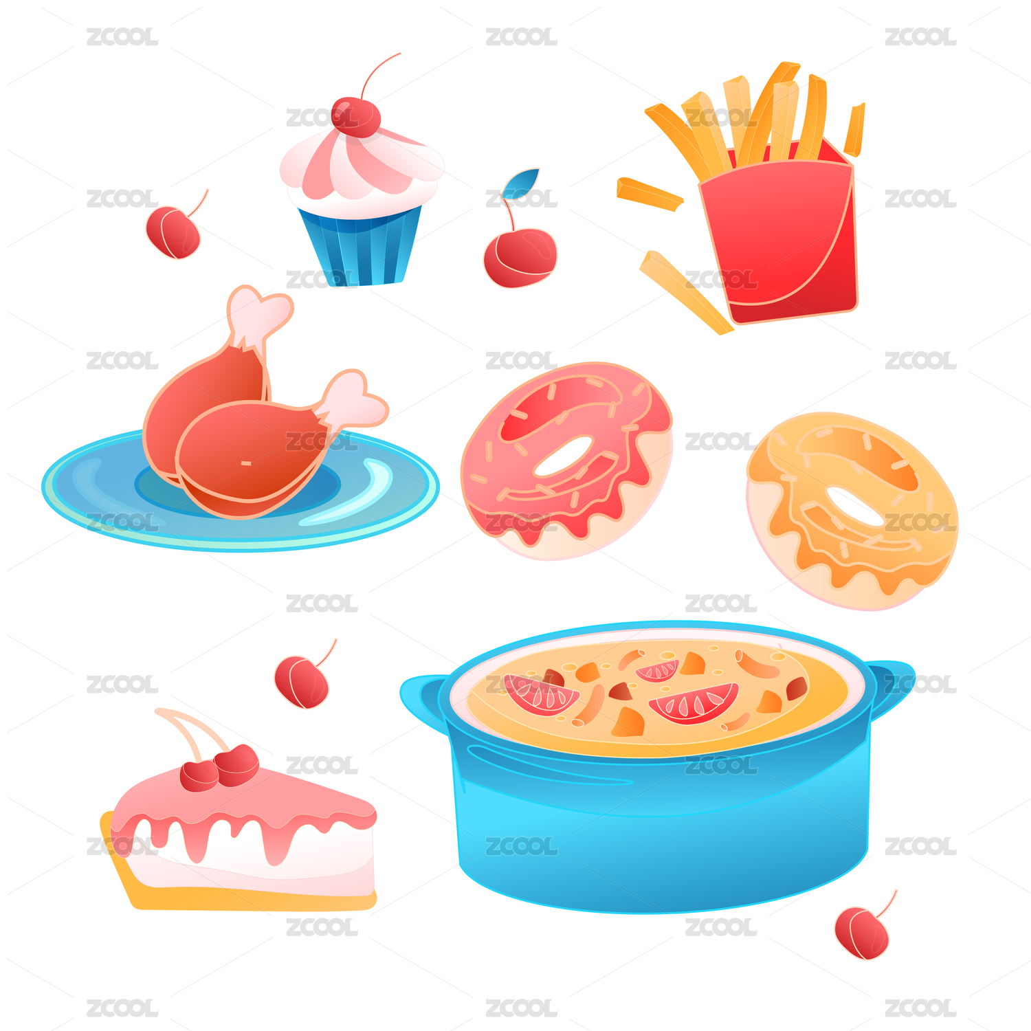 电商,插画,扁平,可爱,甜品,点心,蛋糕,糖果,贴纸,甜点
