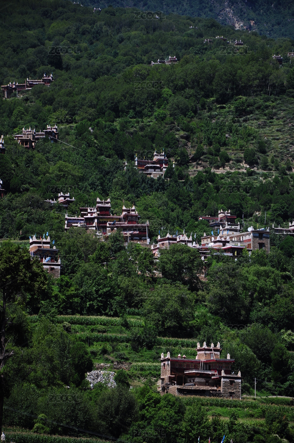 中国四川川西山坡上的民房建筑