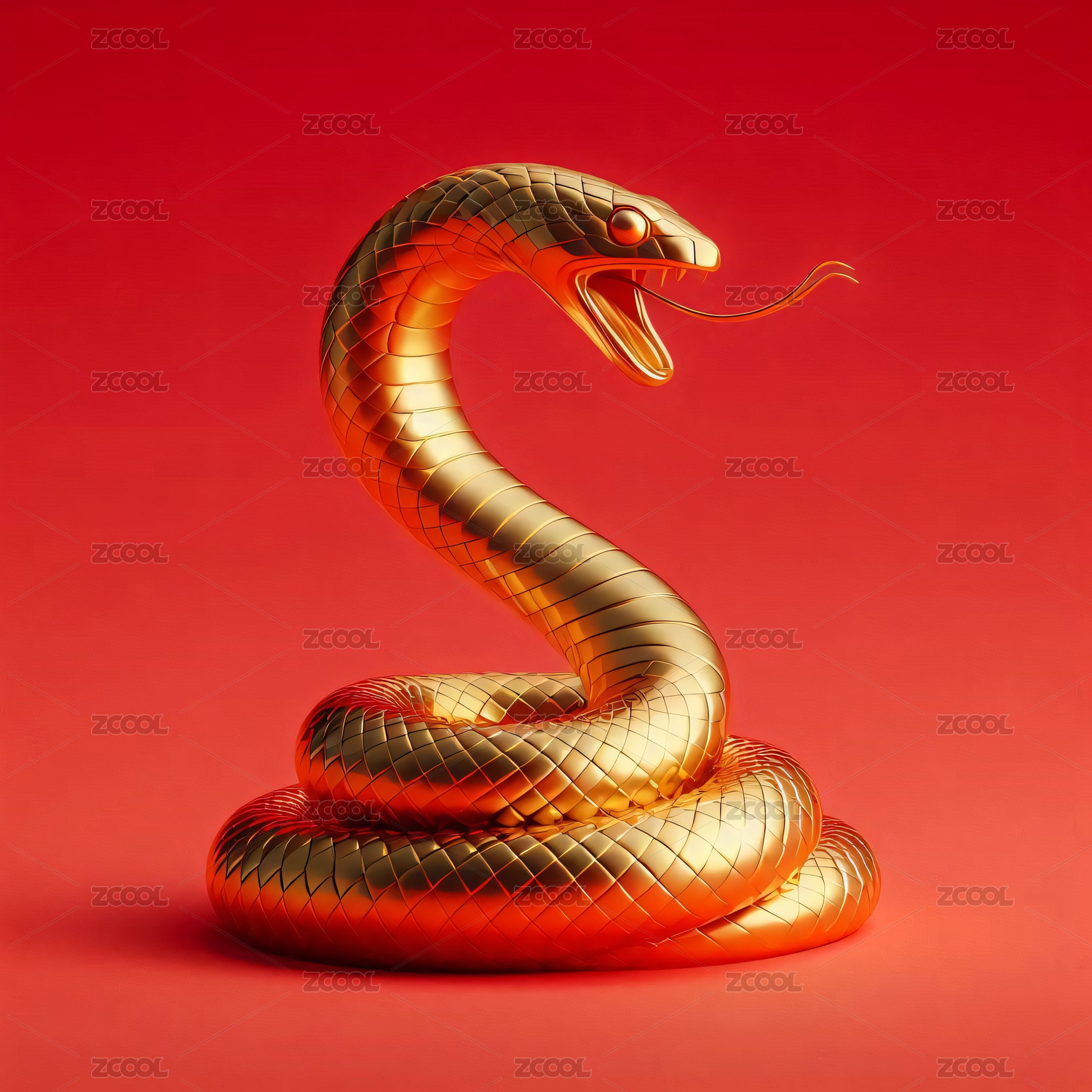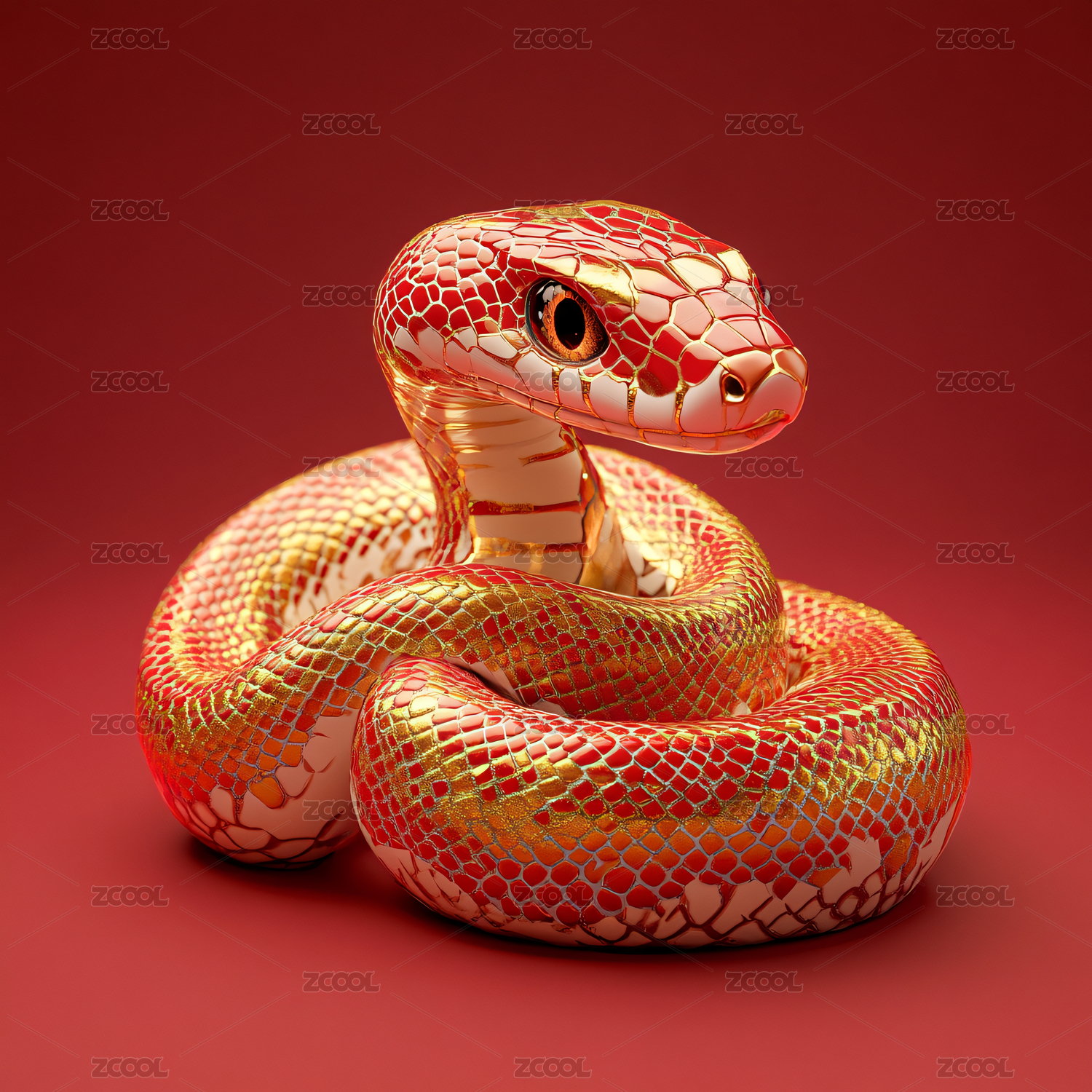 金蛇盘踞红背景