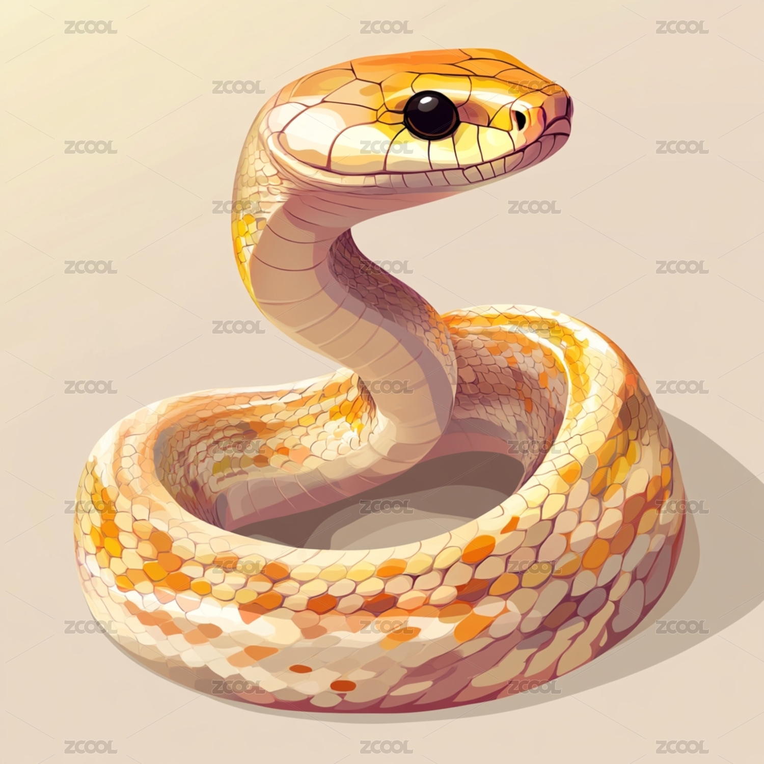 橘色金色盘在地上的大蟒蛇插画