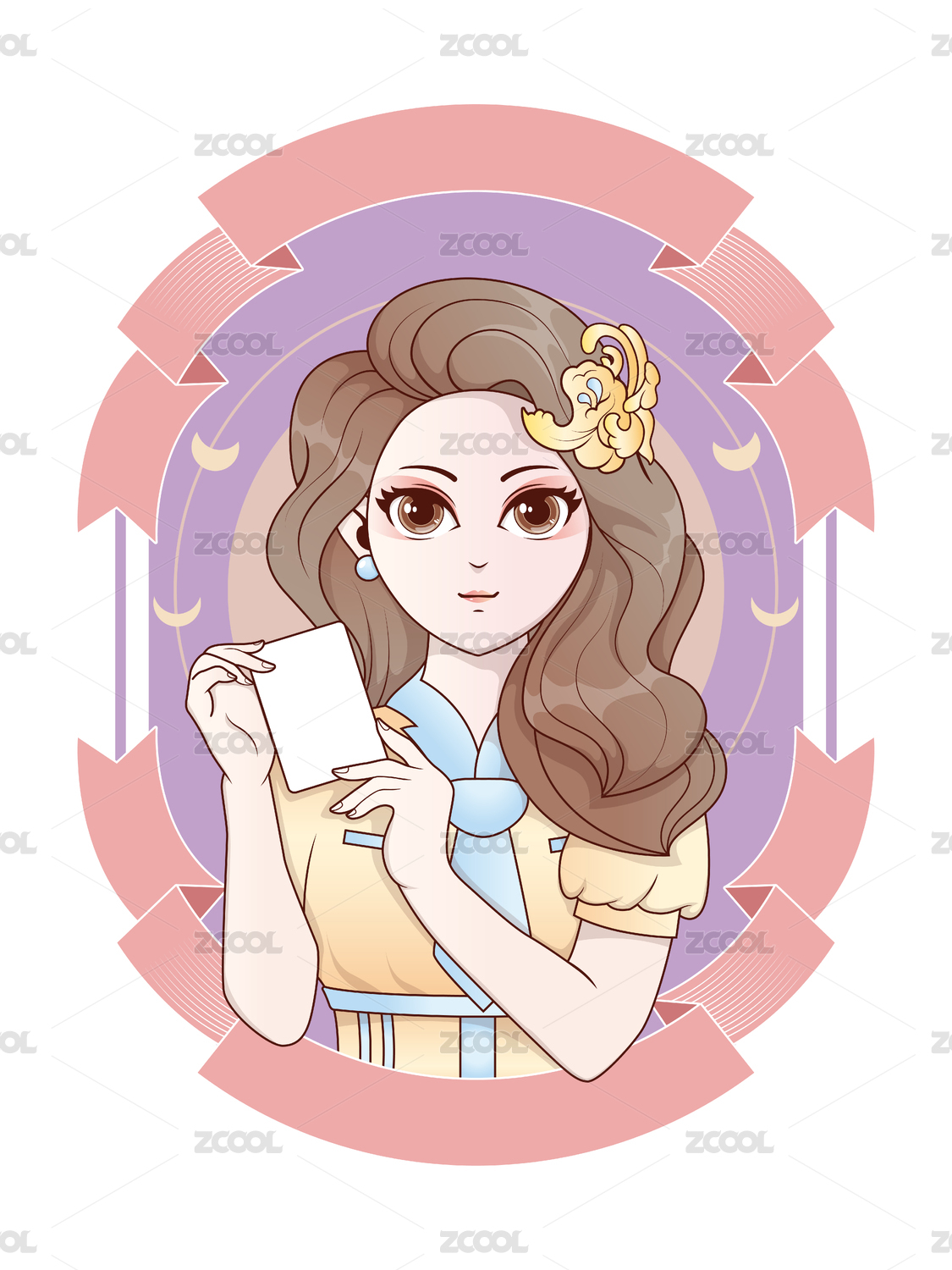 卡通二次元民族风带着头饰的长发精灵姑娘