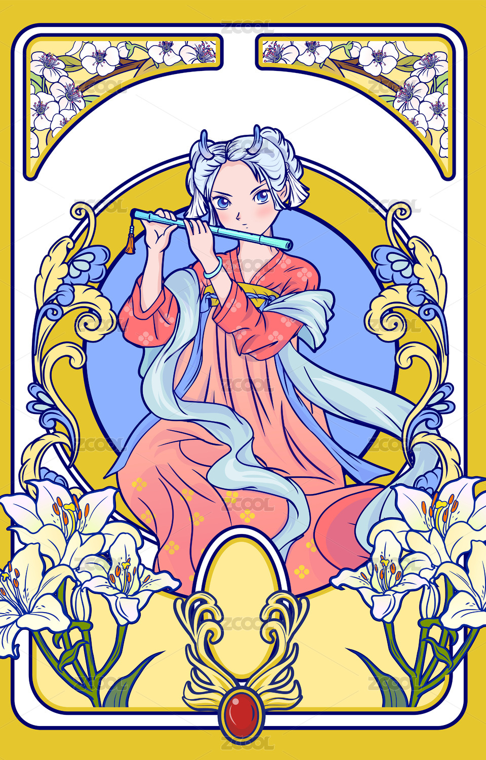 卡通二次元星座花神雪花孔雀装扮的复古少女
