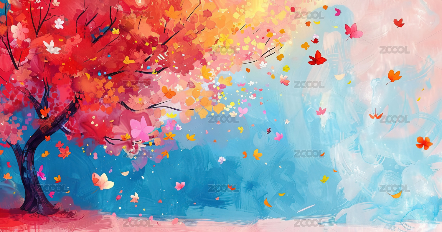 风景,大自然,美景,插画,植物,浪漫,唯美,秋天,深秋,枫树