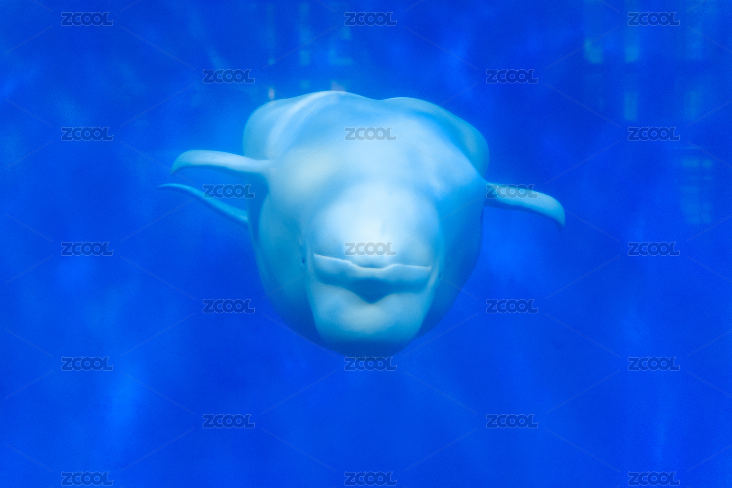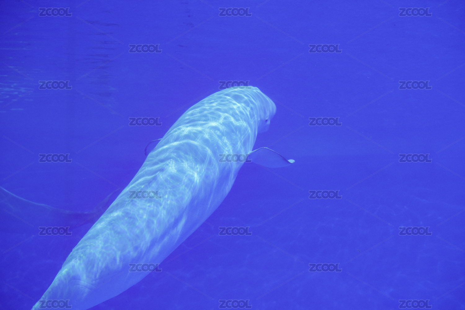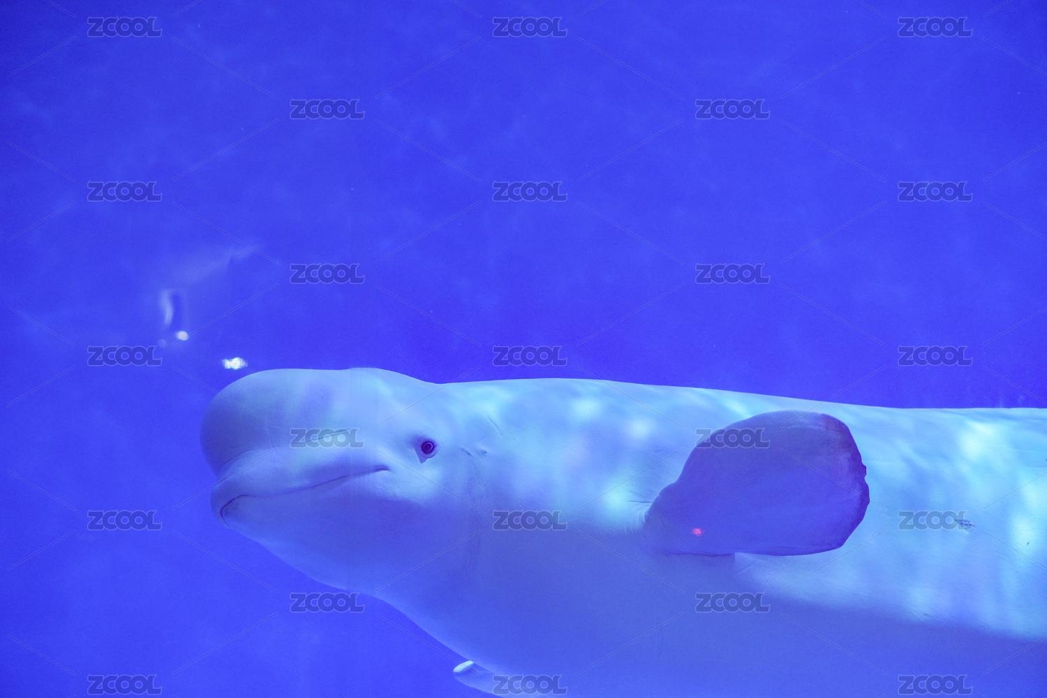 海洋馆蓝色水池里的白鲸