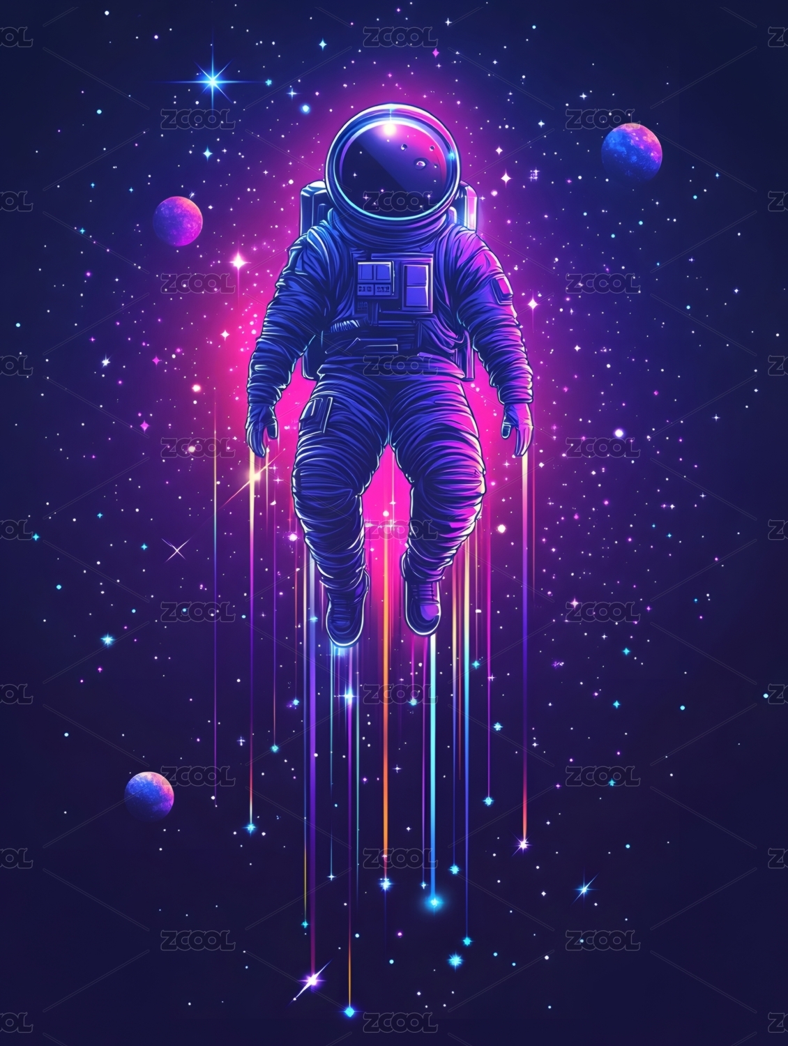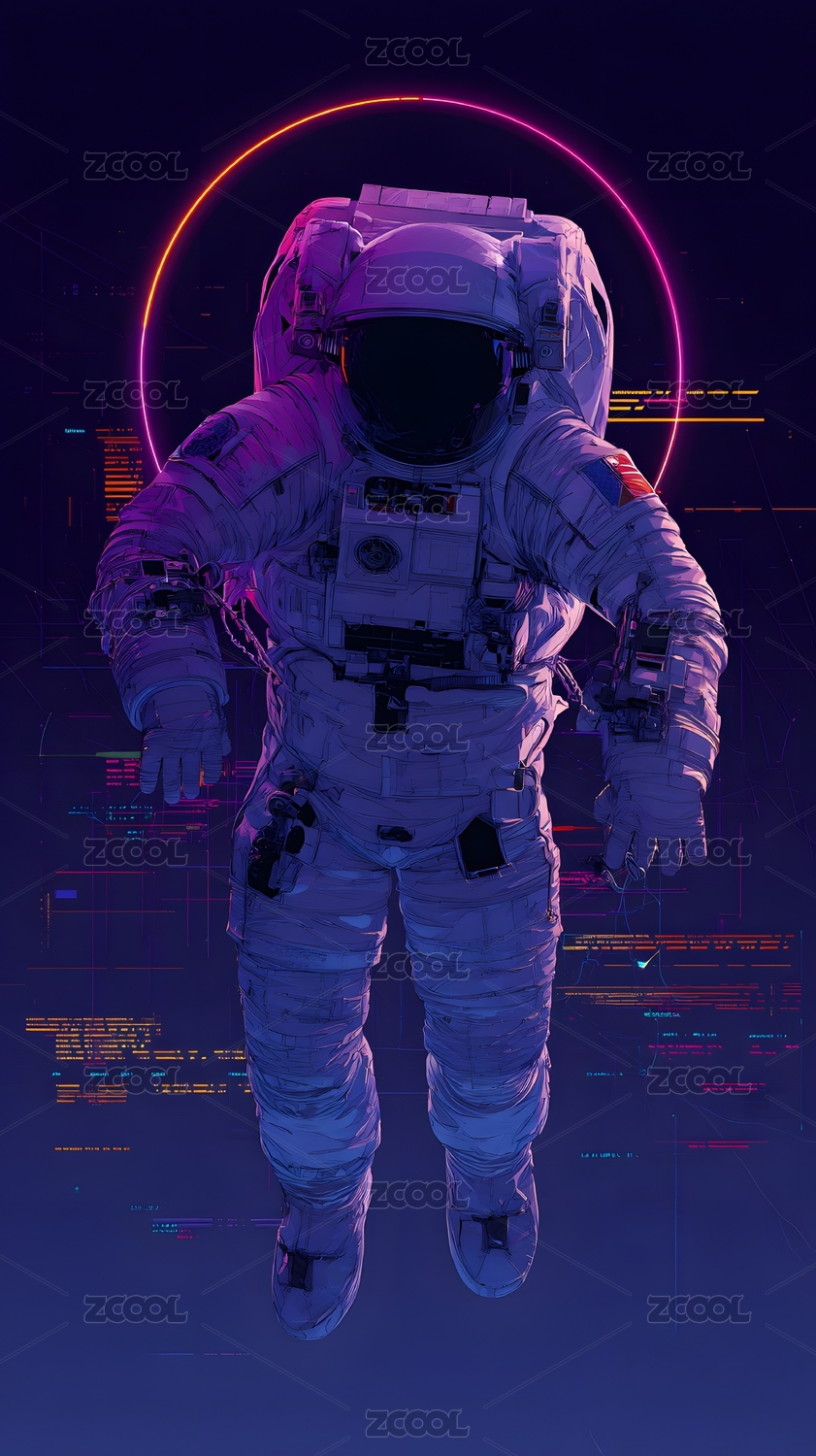宇航员太空漂浮 霓虹光环 赛博朋克