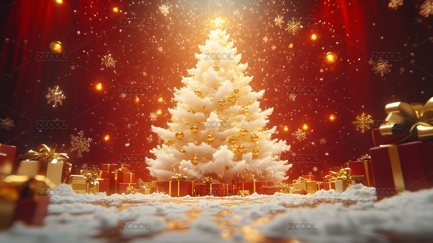 圣诞树,圣诞节,礼物,红色,金色,灯光,装饰,节日,庆典,喜庆