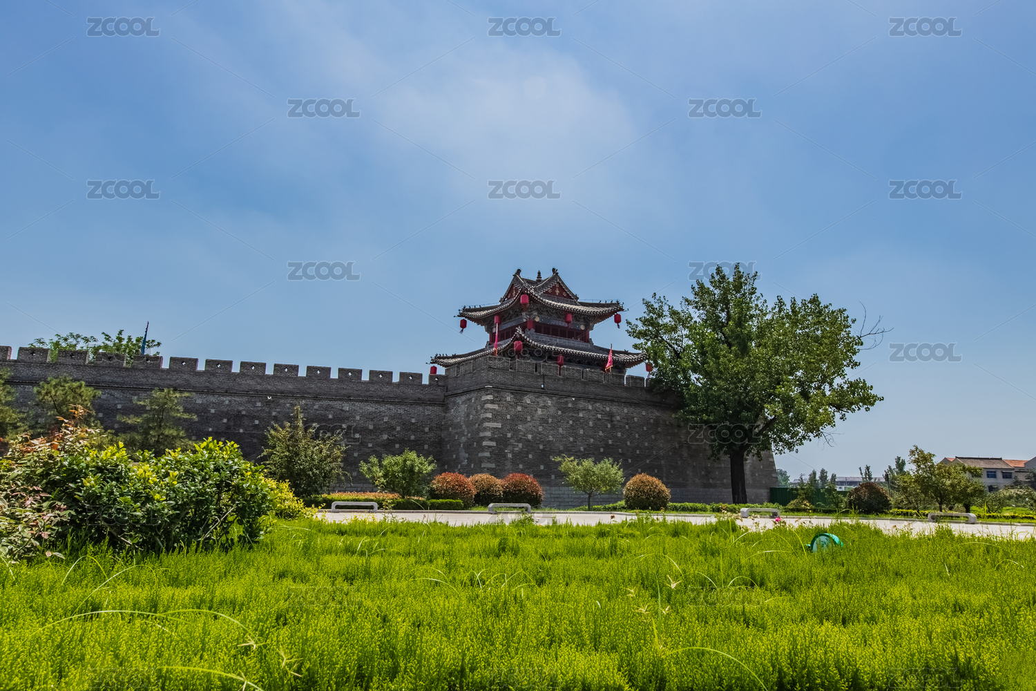 中国山东聊城东昌古城城楼城墙古建筑街景