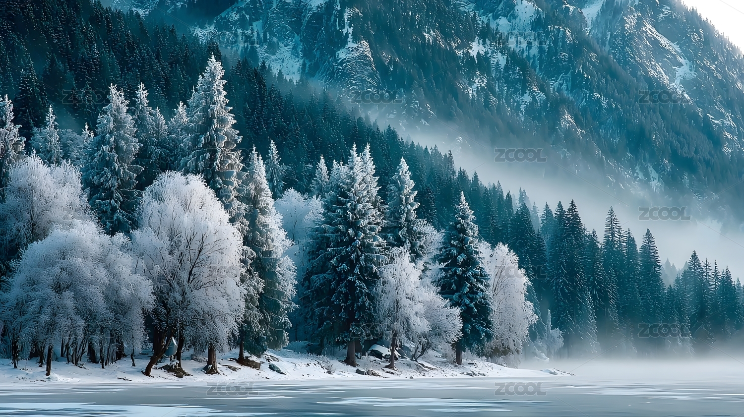 DXCZ202402,冬季,树木,河流,山峰,雪山,雪景,大雪