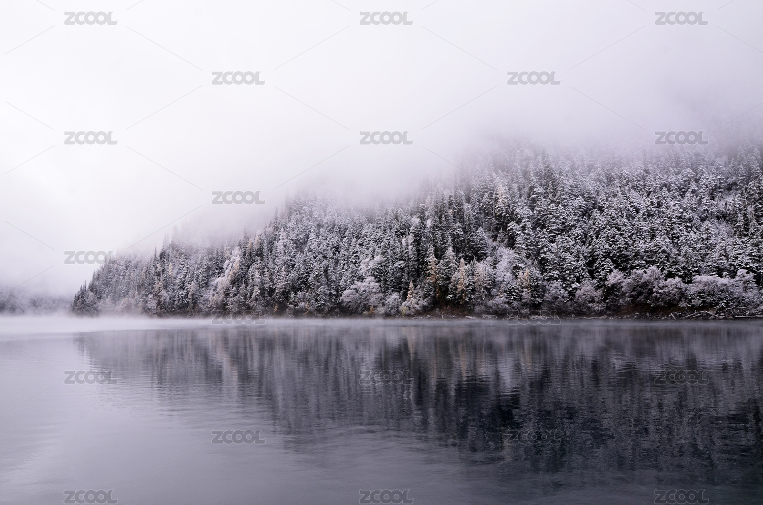 冬日雪松湖畔静谧