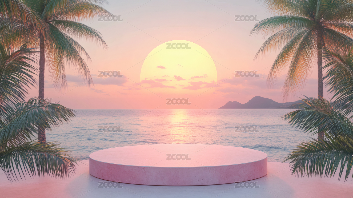 展示台,商品展示台,极简,节日,商务,商品,展台,落日,黄昏,椰树