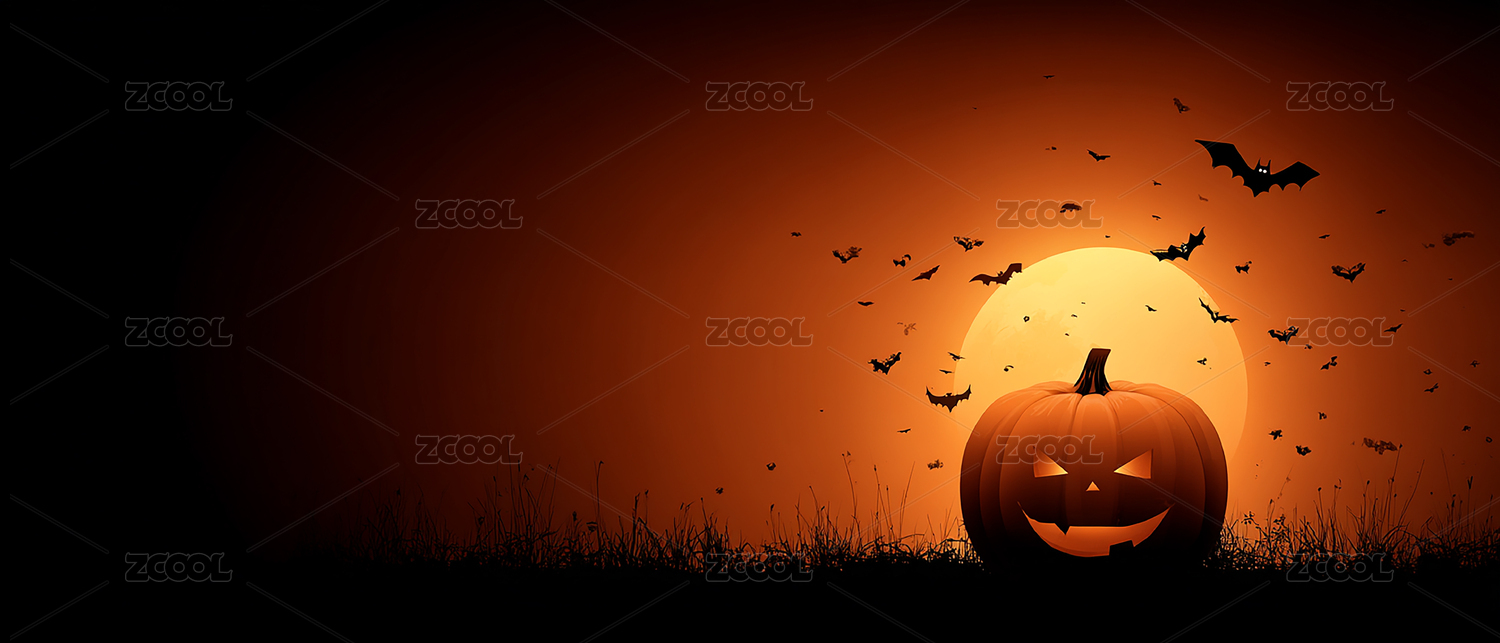 卡通万圣节派对晚上整齐的南瓜月亮插画背景