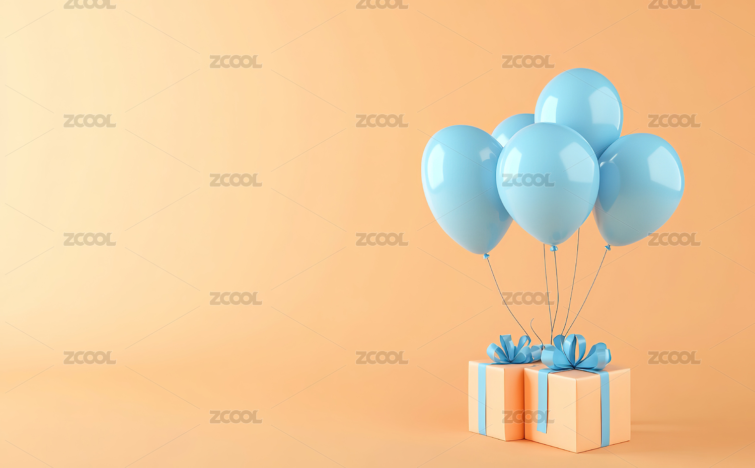 蓝色背景下的气球和桌子上的气球的特写镜头
