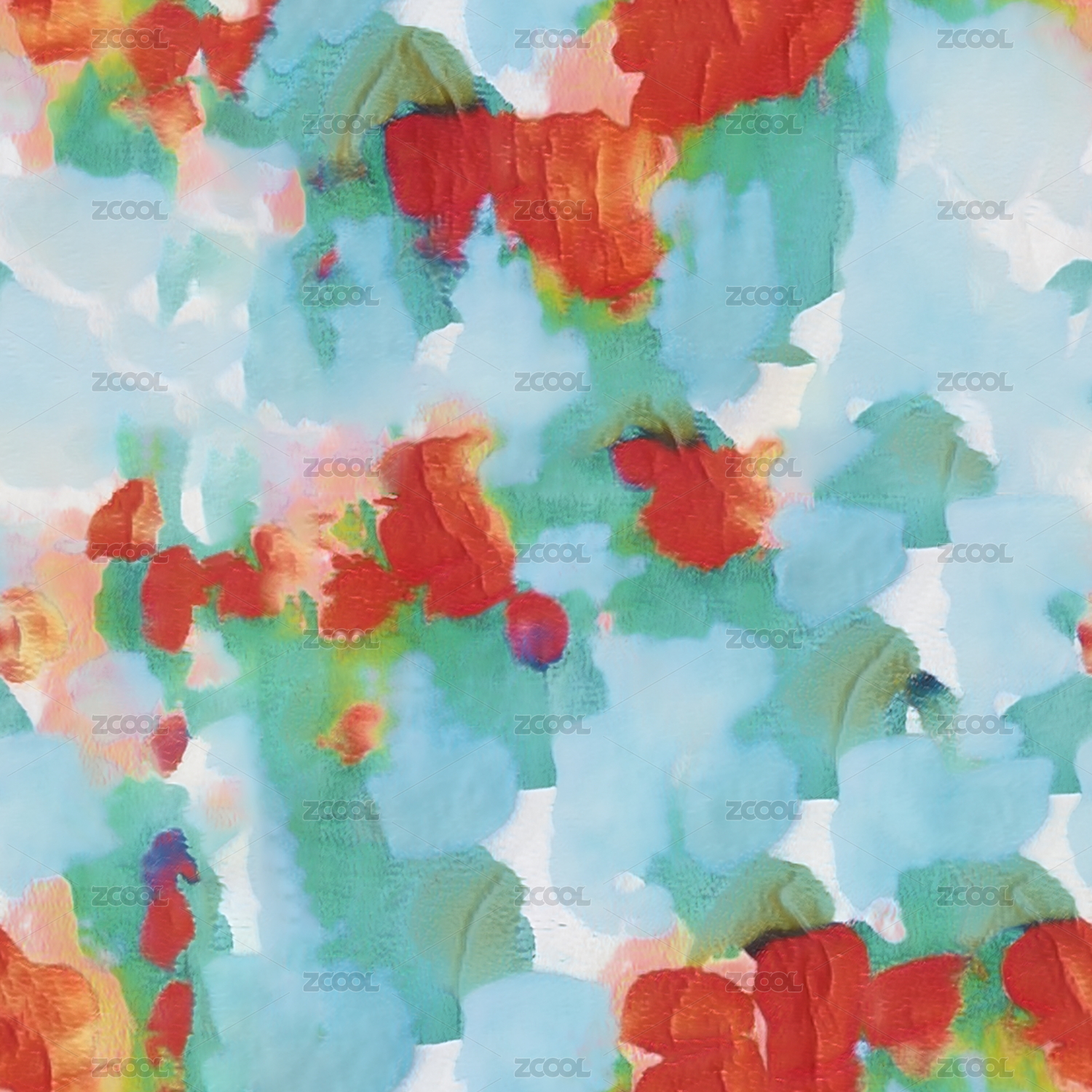水彩花卉满印四方连续无缝图案
