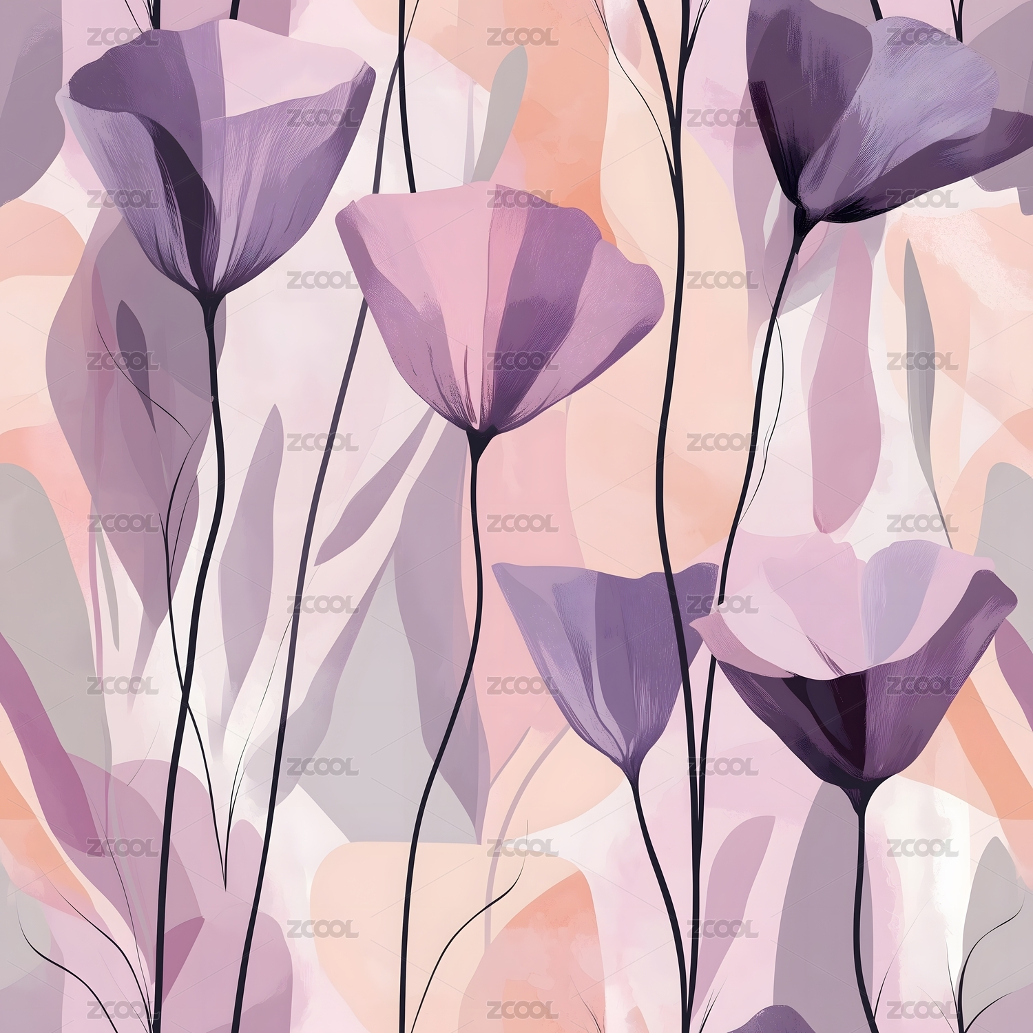 紫色花油画风背景