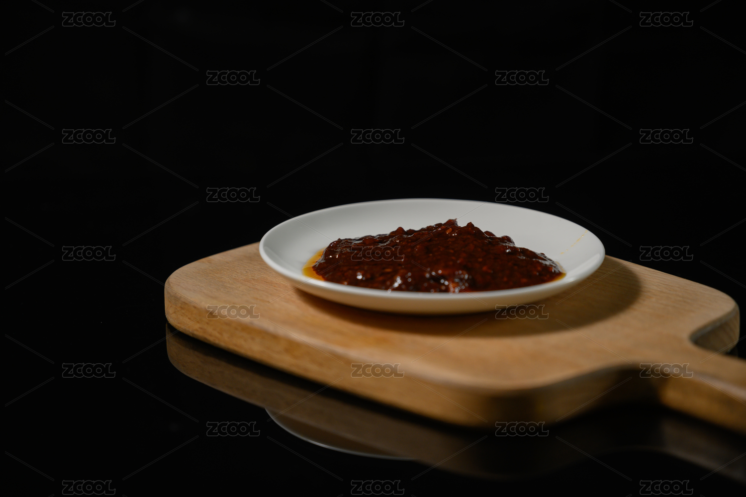 桌面上的盘子里的美味可口的传统豆瓣酱