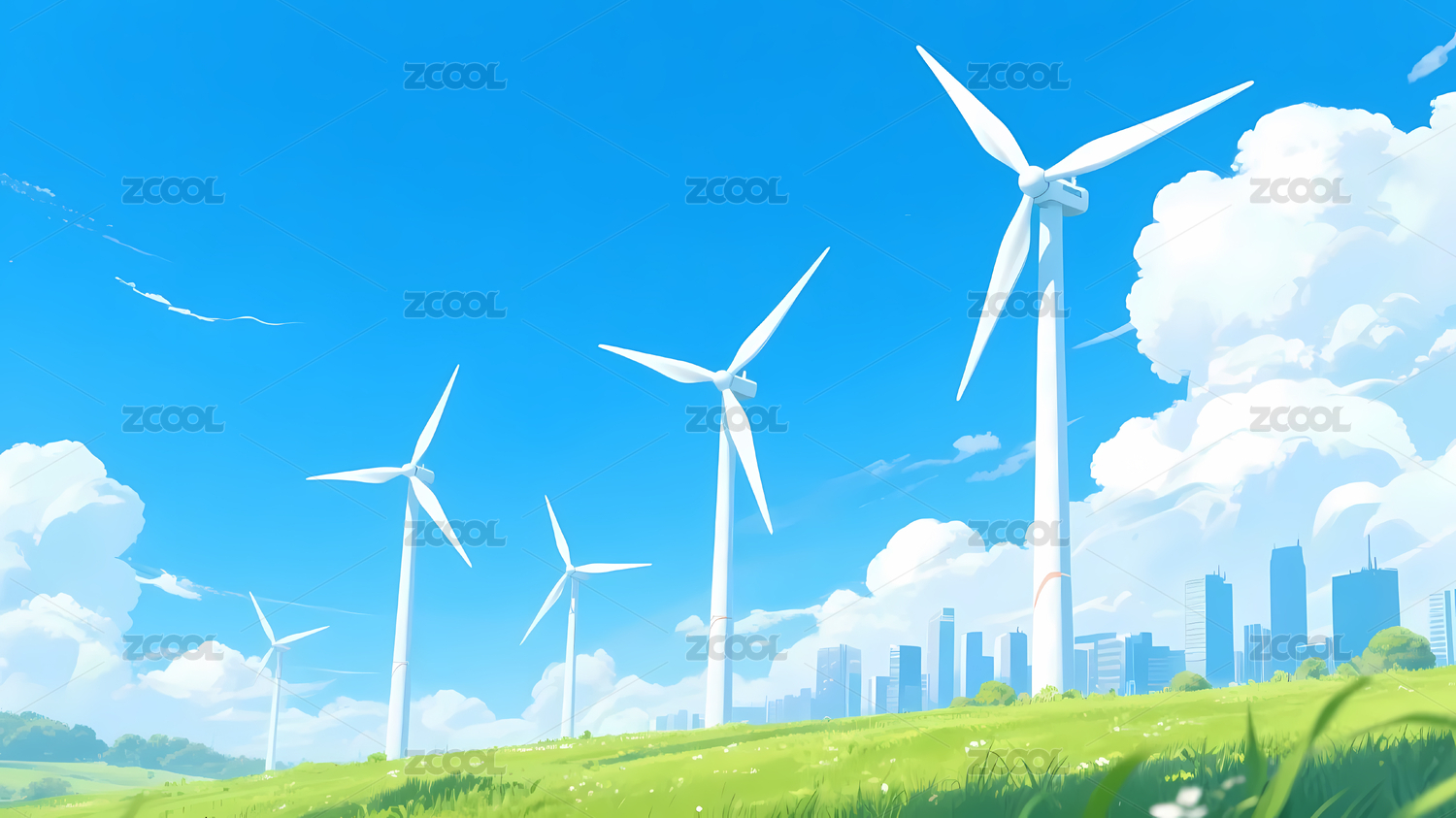 田野,悠闲,风力,发电,科技,清新,环保,生态,AIGC202405