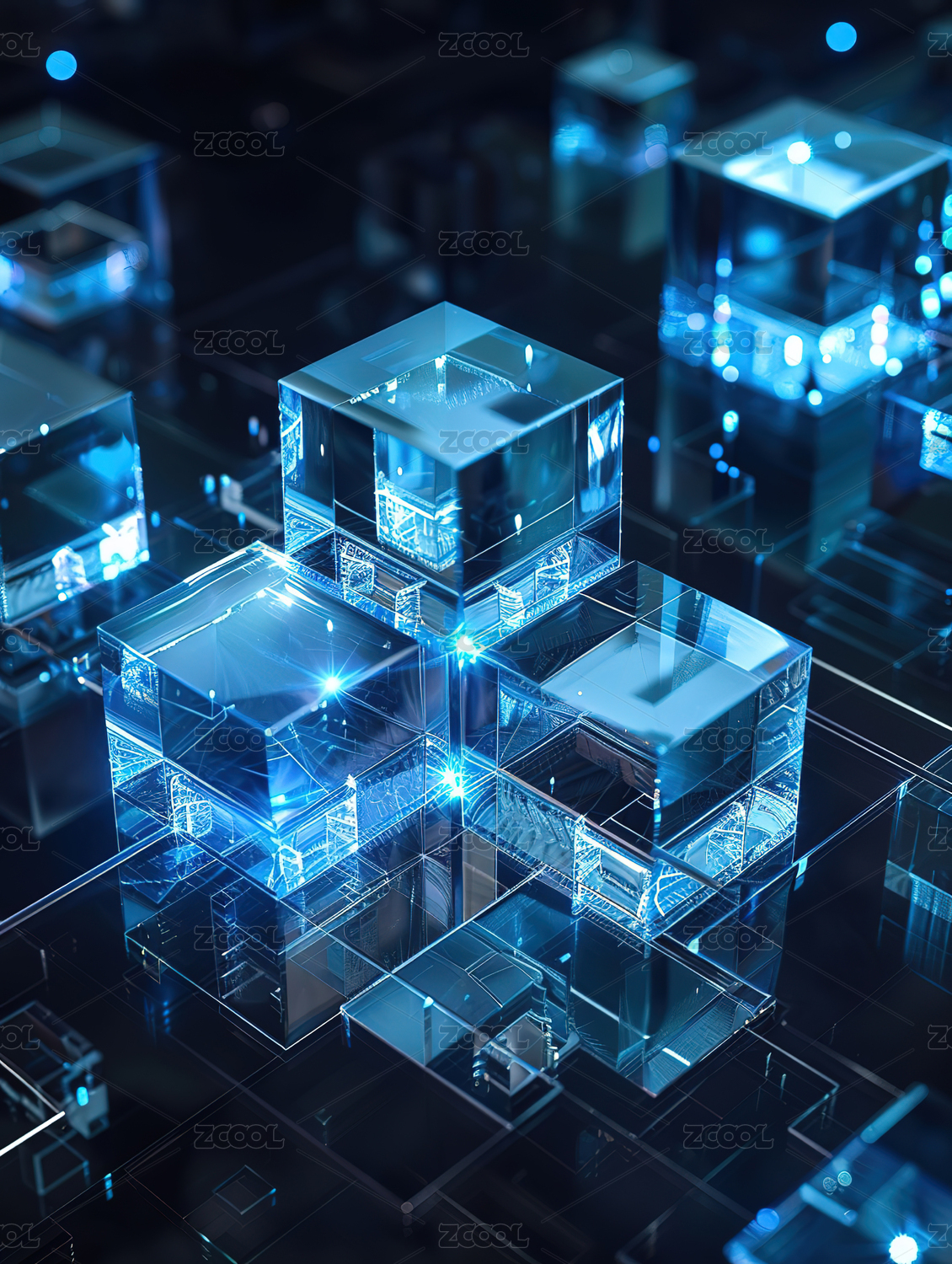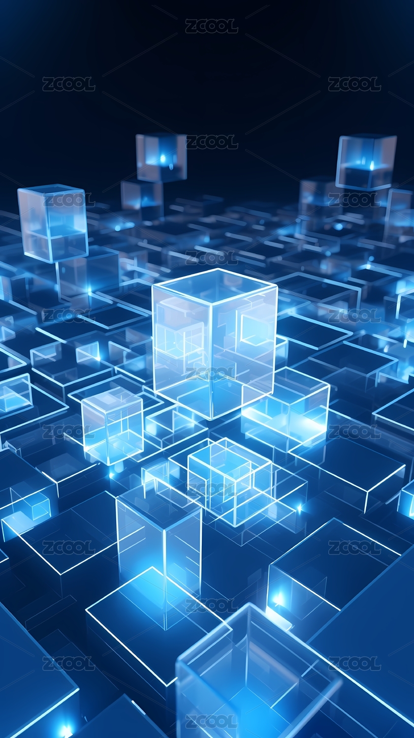 蓝色立体玻璃半透明方块背景