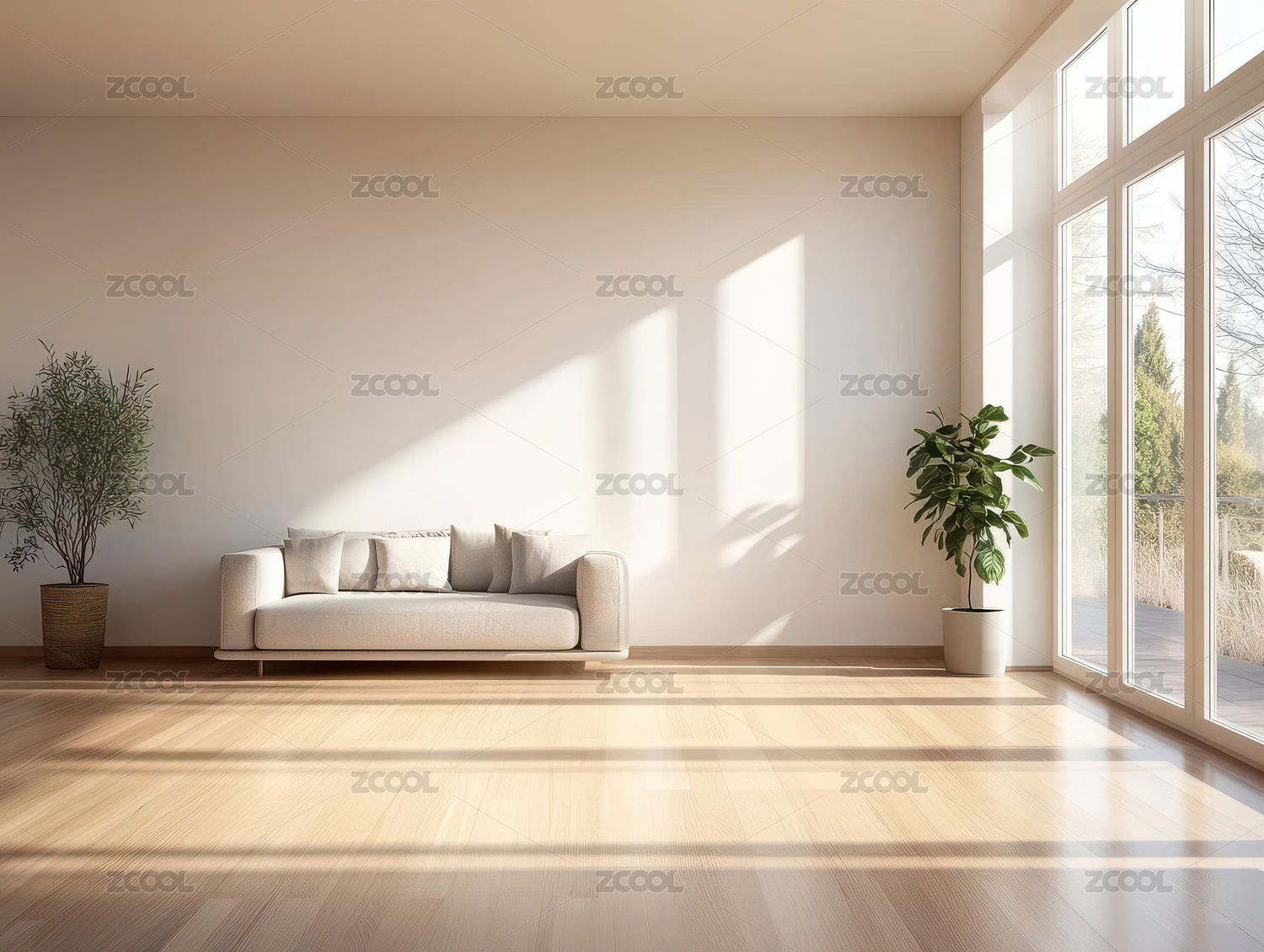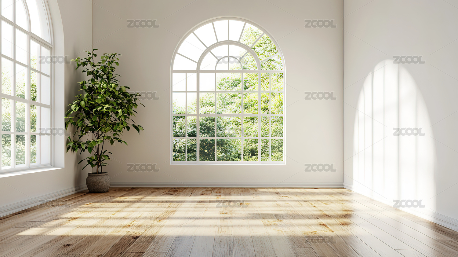 明亮空房间角落窗边绿植