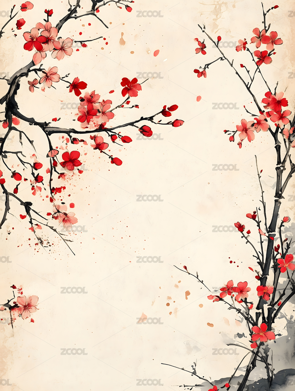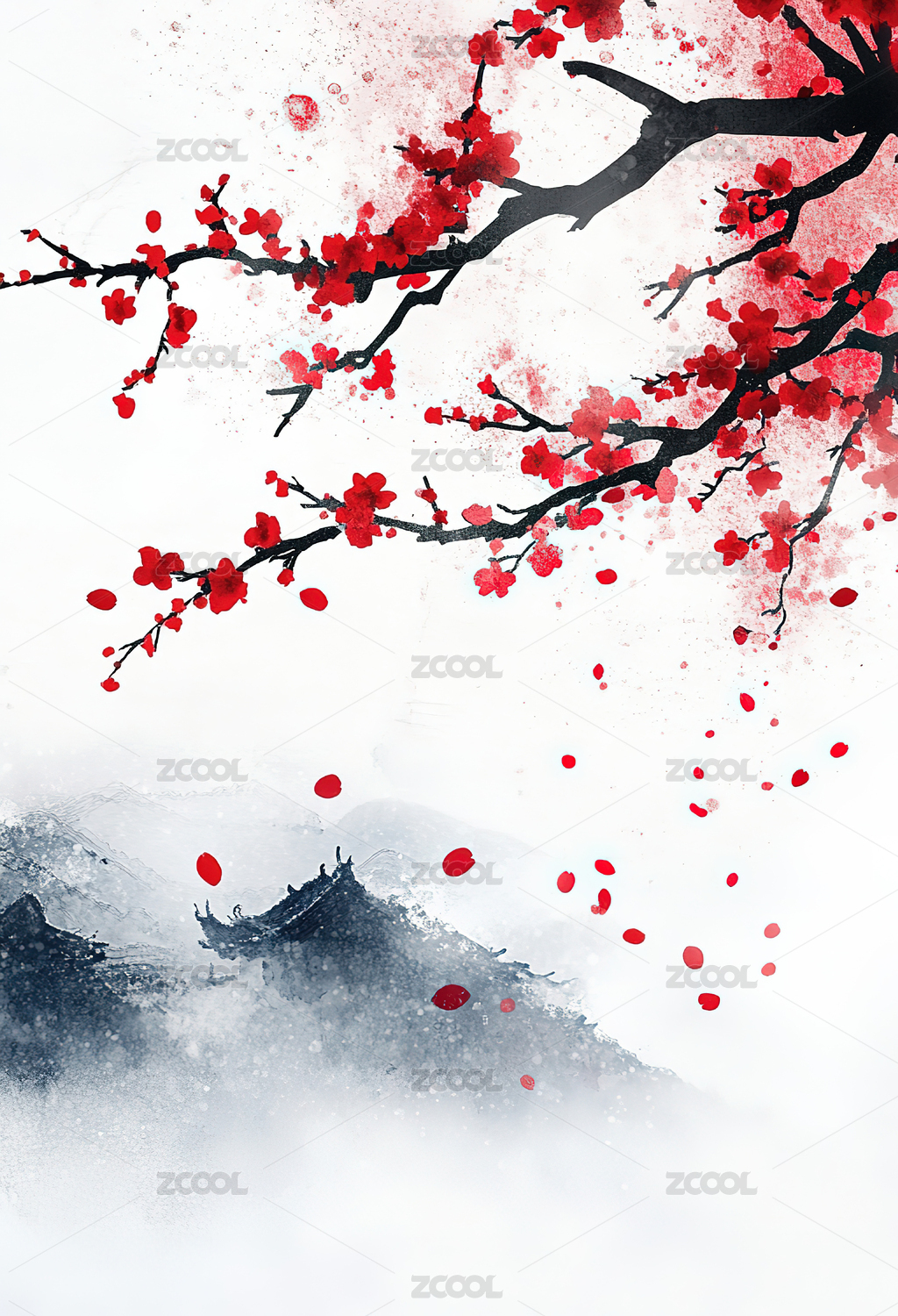 古风,古典,纯色,水墨,竹子,梅花,气节,唯美,梦幻,背景