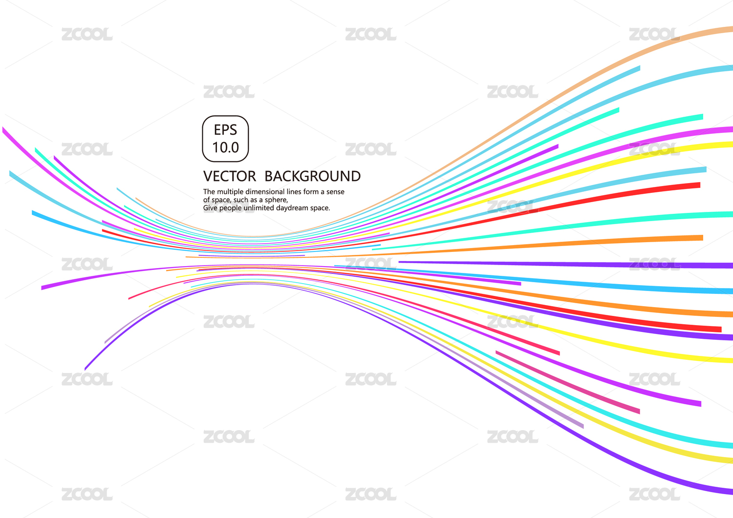 彩色线条组成发光的光束背景图,抽象矢量背景图