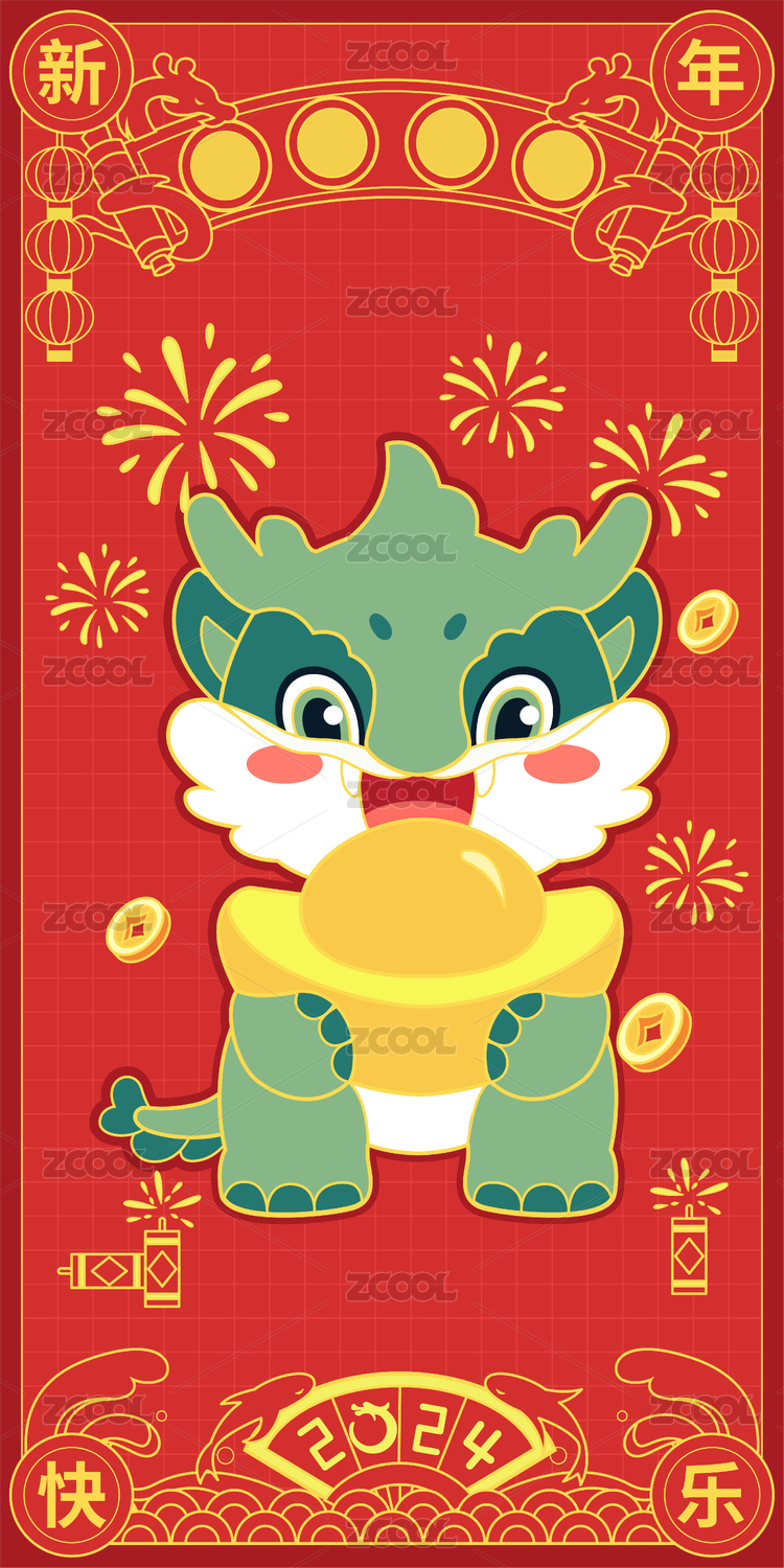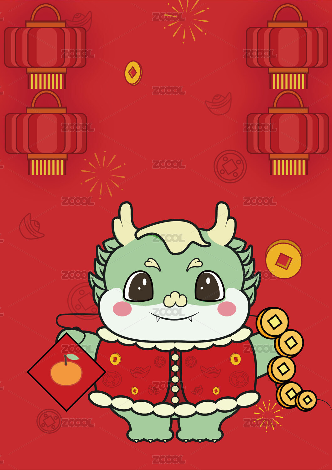 龙年,红包,插画,十二生肖,卡通,中国文化,背景,春节,新年,节日