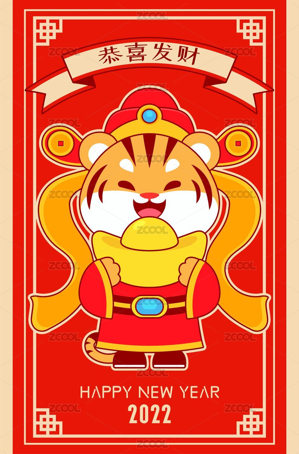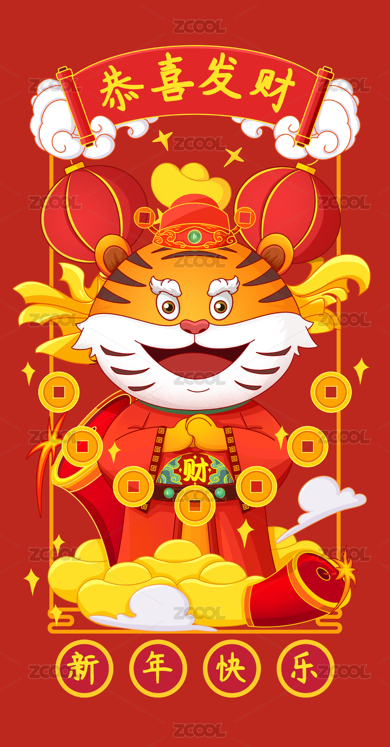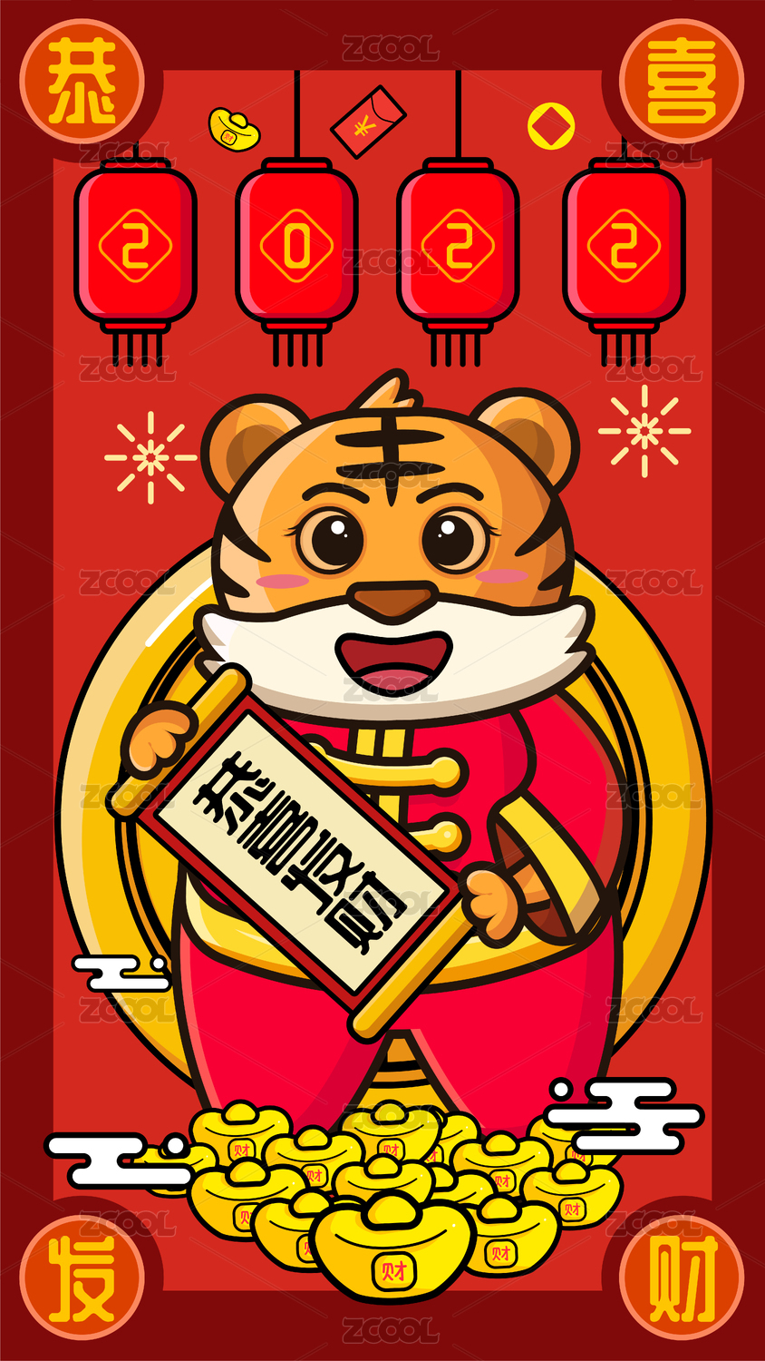 国潮恭喜发财锦鲤开运红包老虎送财春节海报
