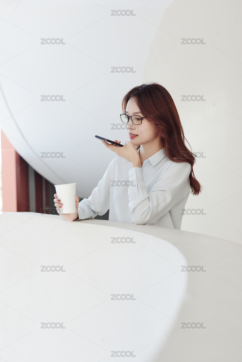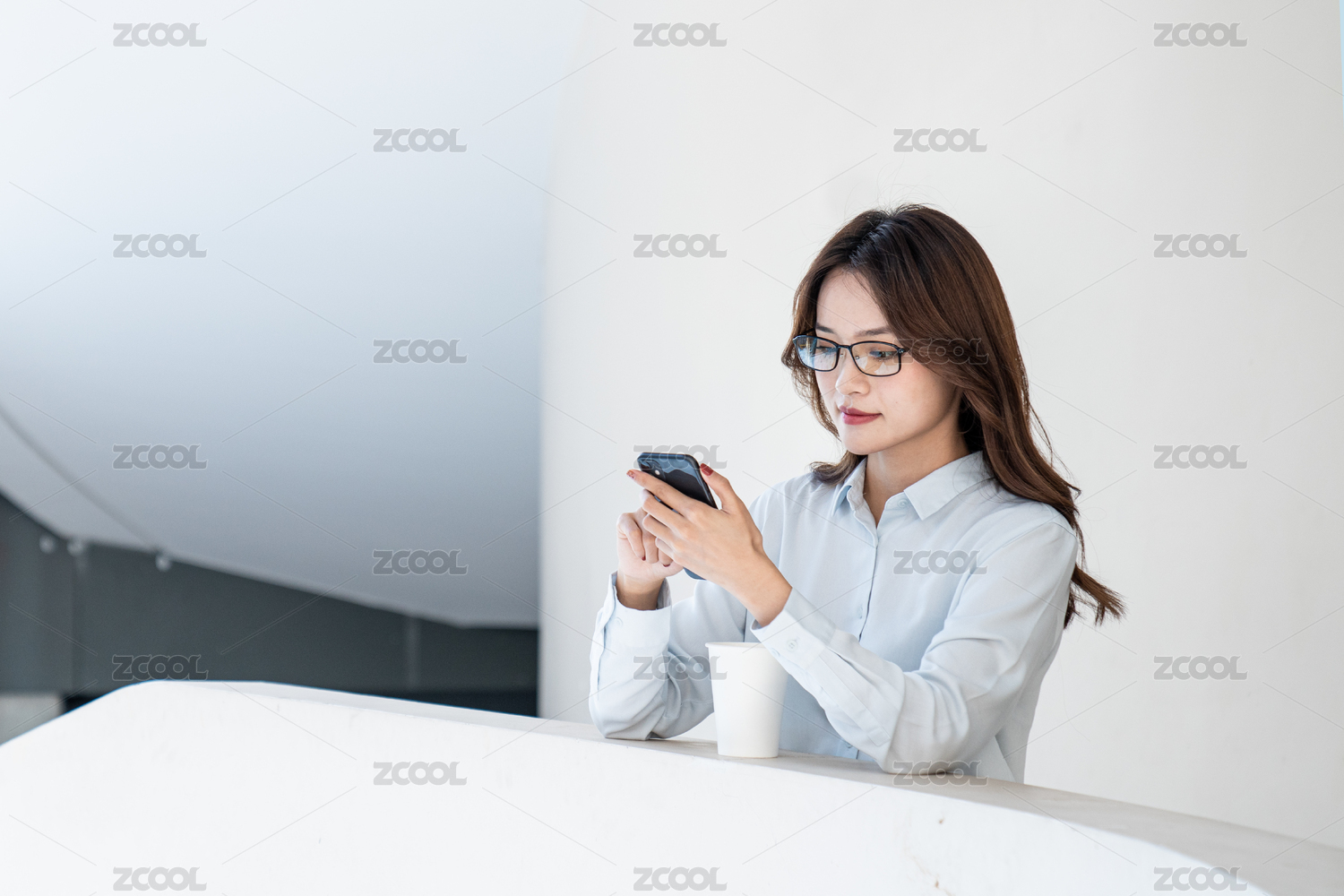 一亚裔年轻女白领在使用手机