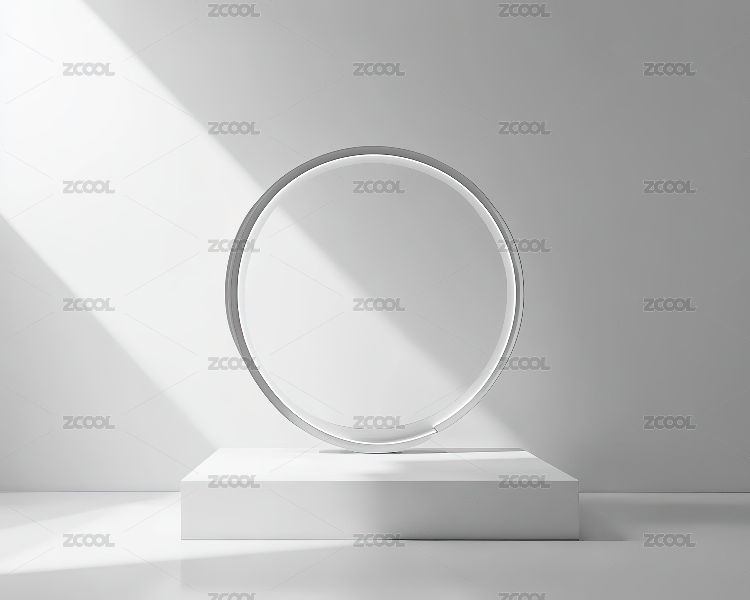 现代,简约,室内,光环,立方体,发光,白色,窗户,装饰,基座