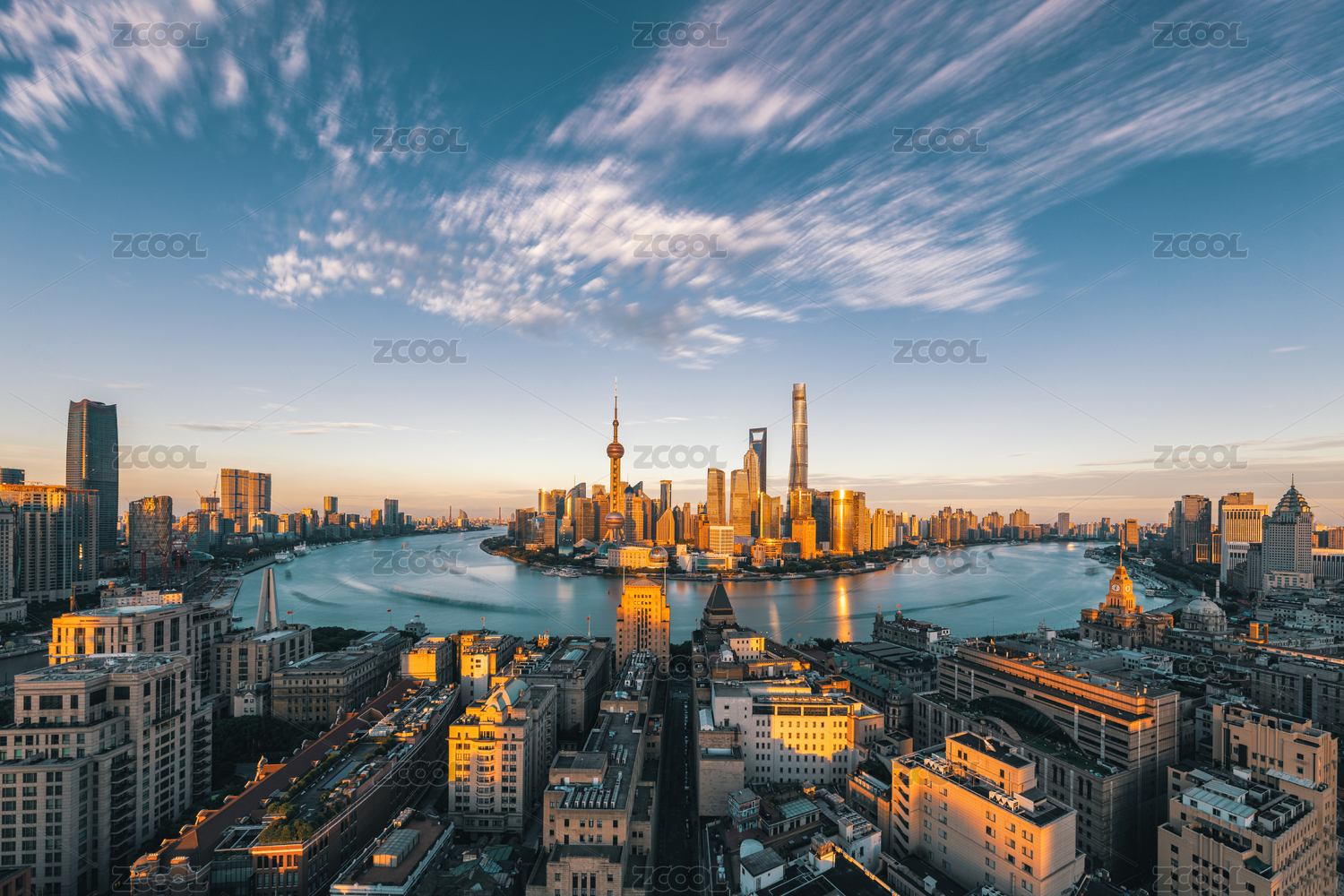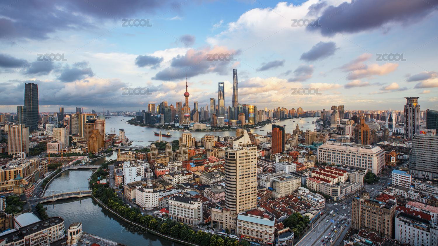 中国上海虹口区中信广场顶楼天台视角拍摄陆家嘴