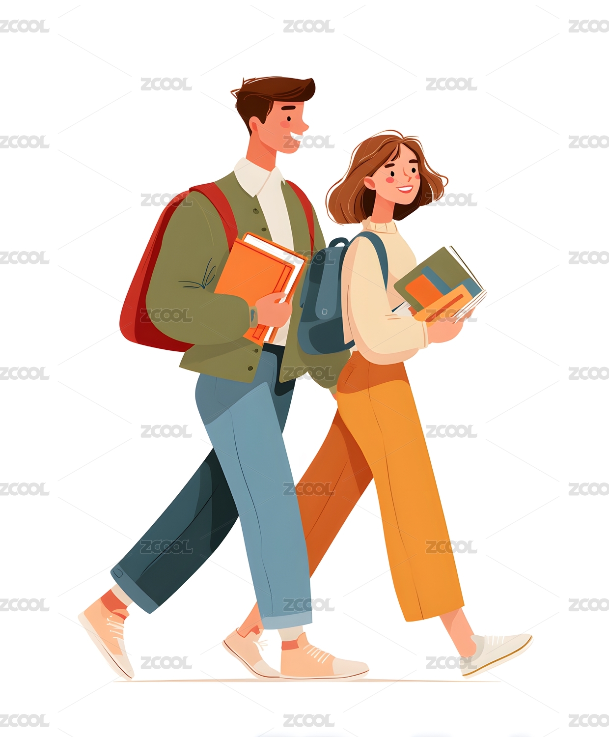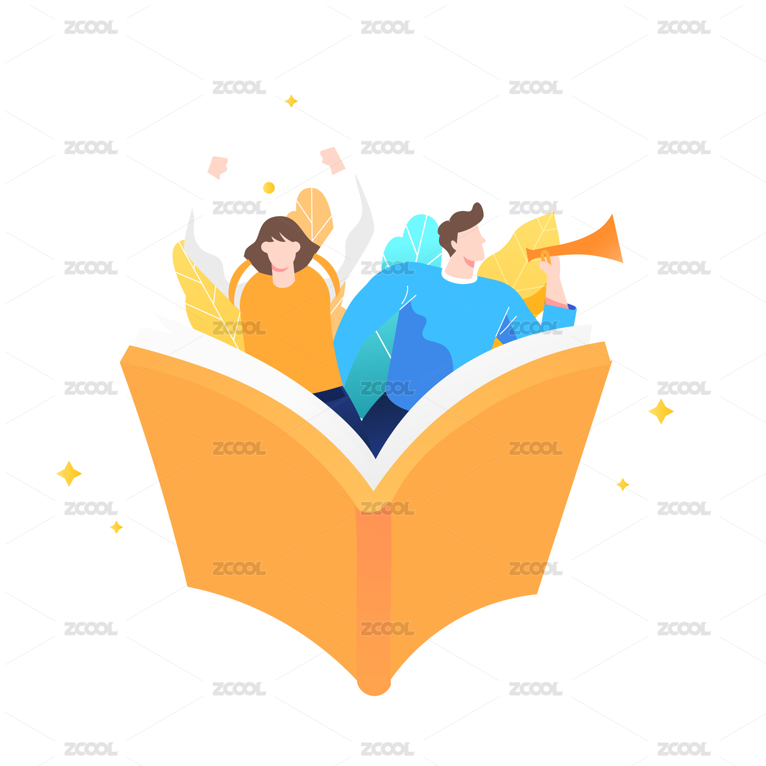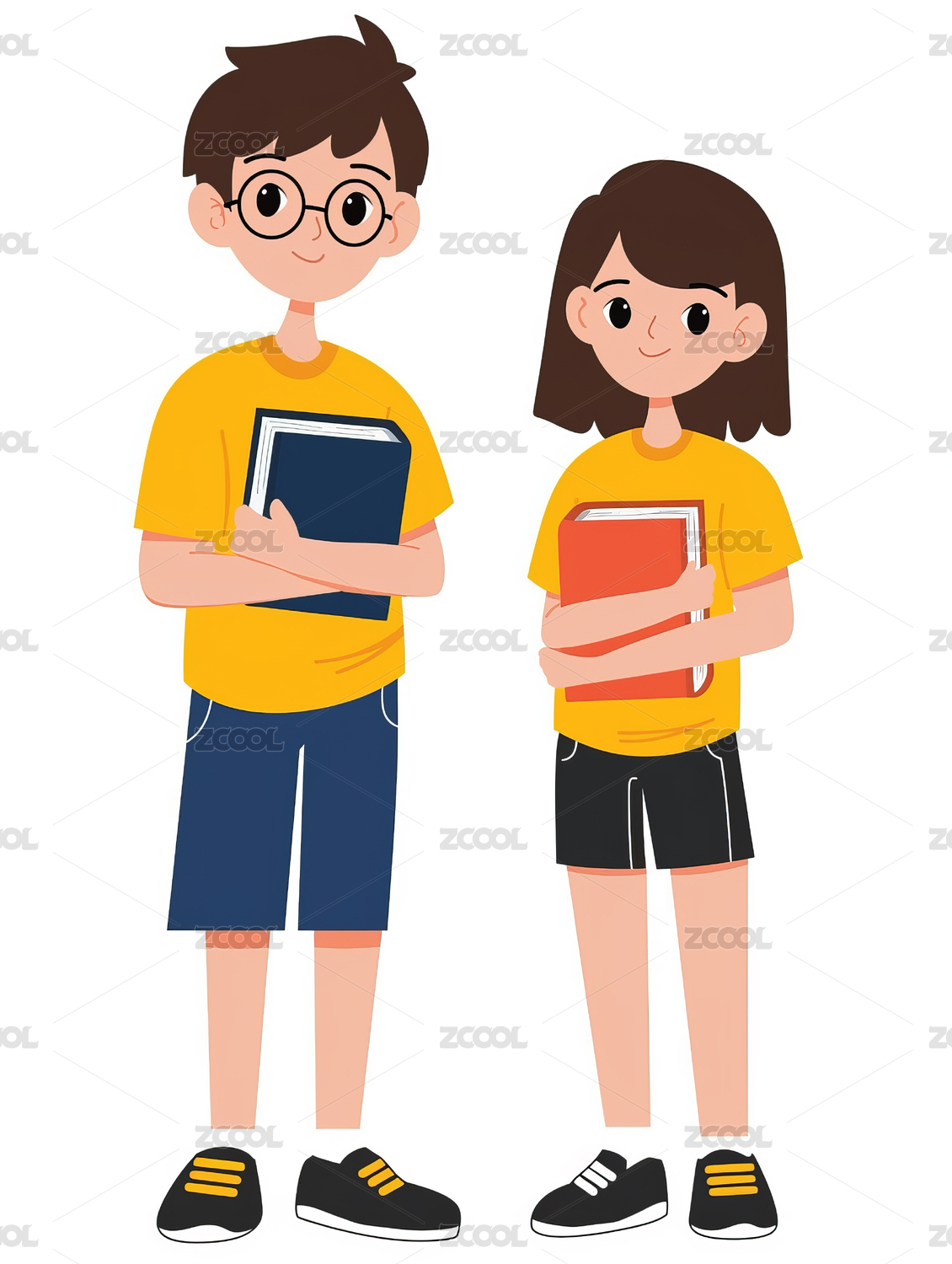 手上拿着书的两个人插画