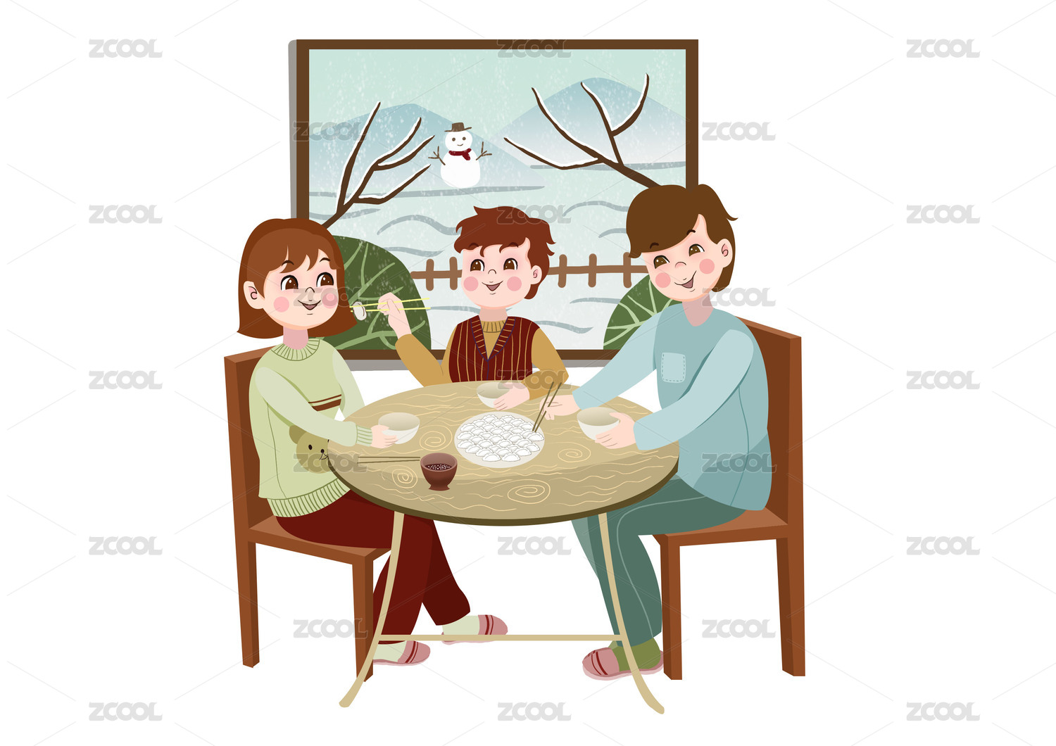 中秋节一家人团圆插画过年聚餐年夜饭海报