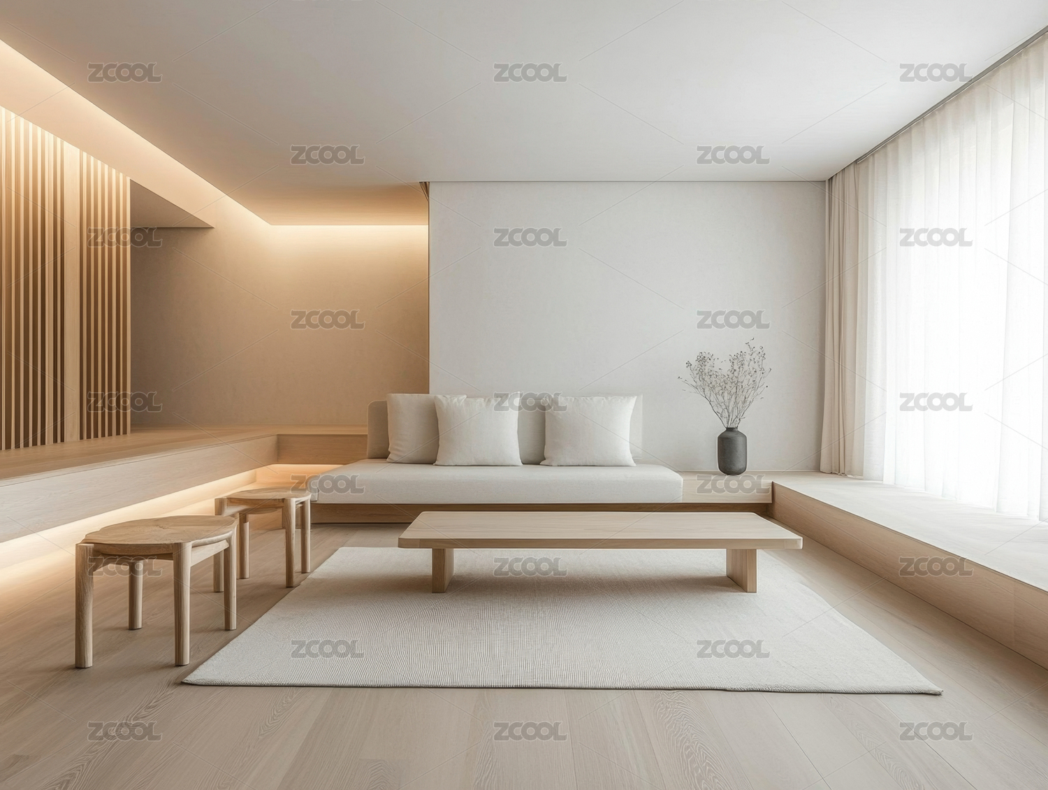 卧室,简约,床,枕头,白色,窗帘,自然光,植物,地板,墙壁