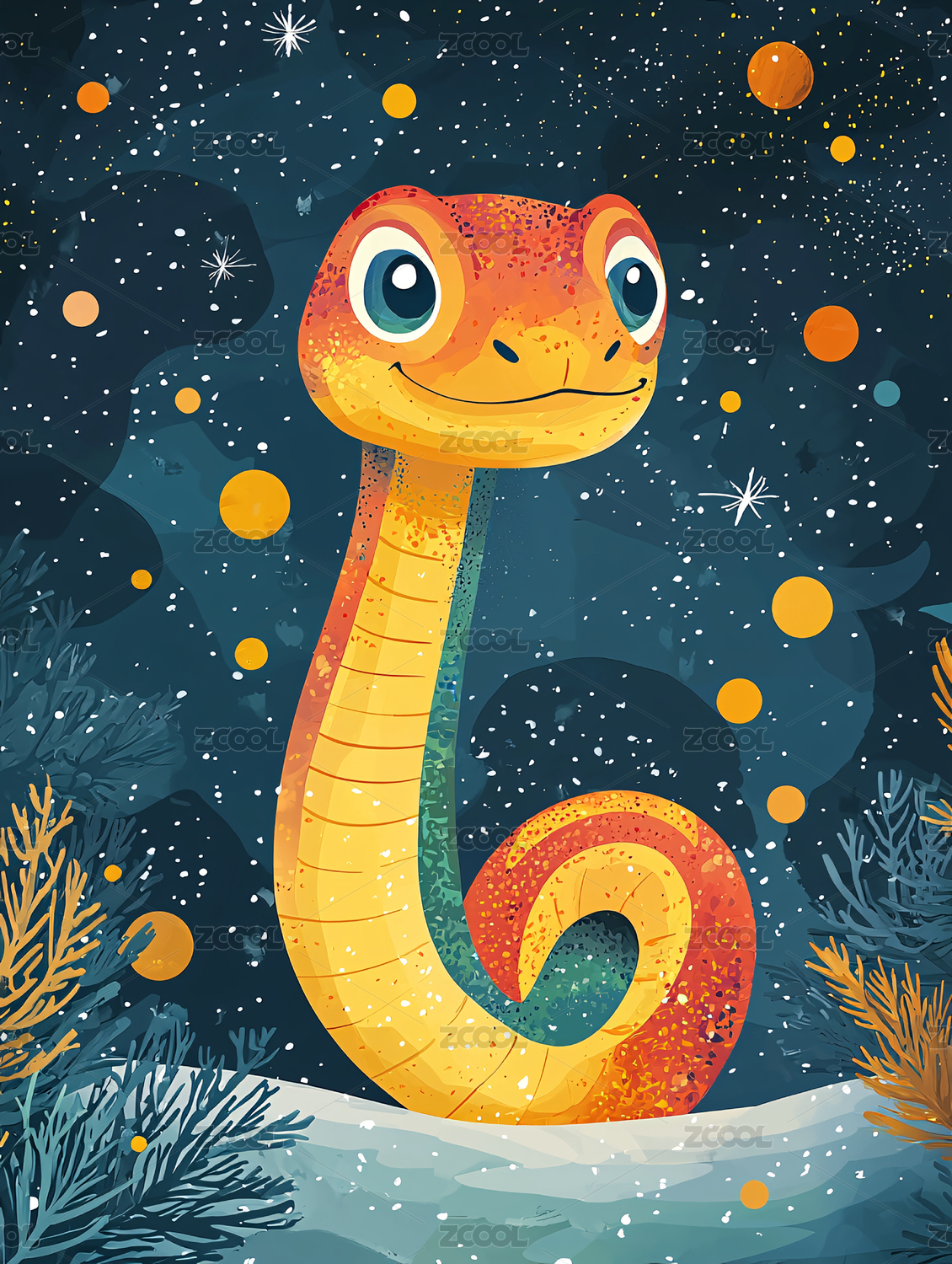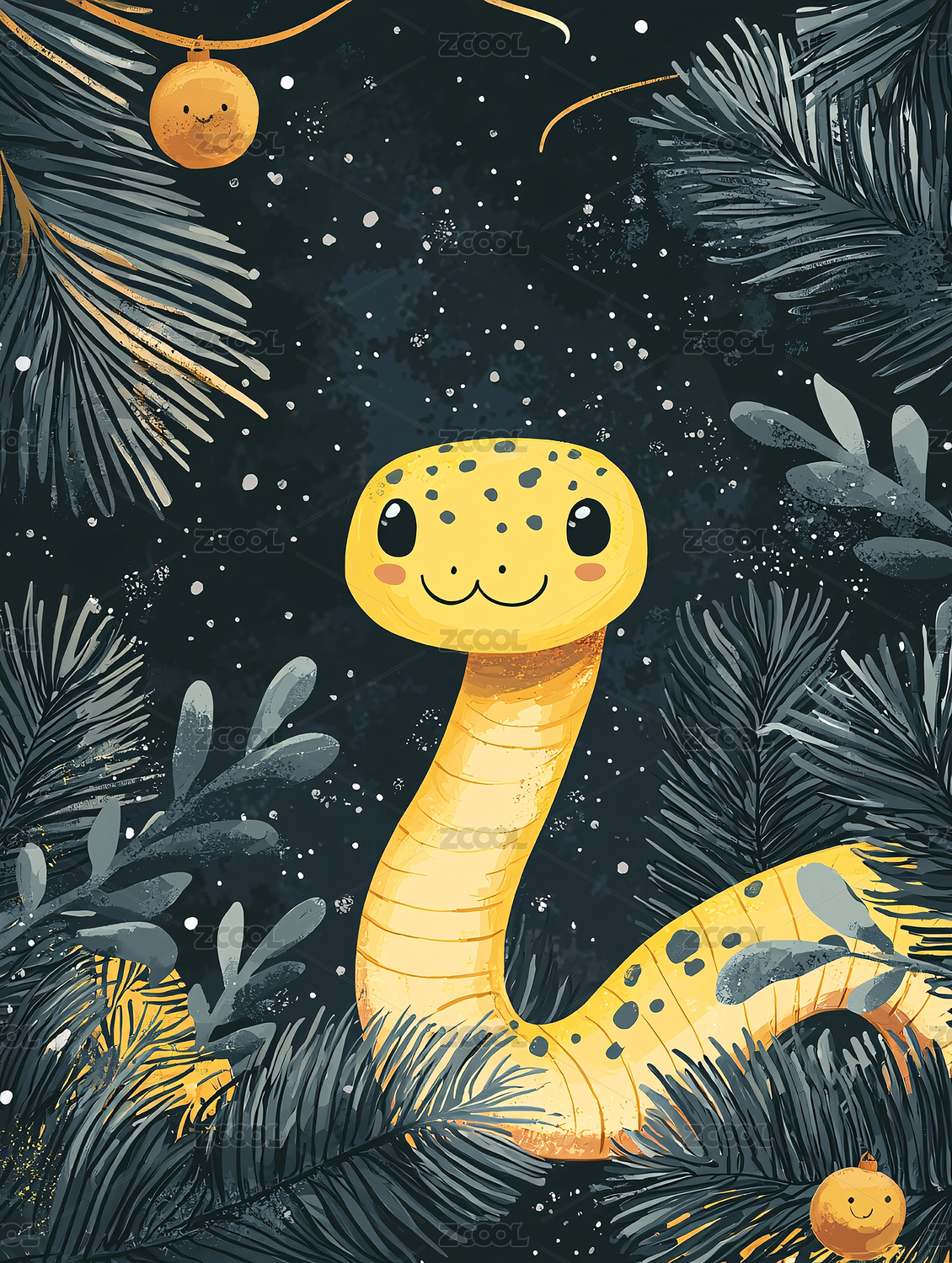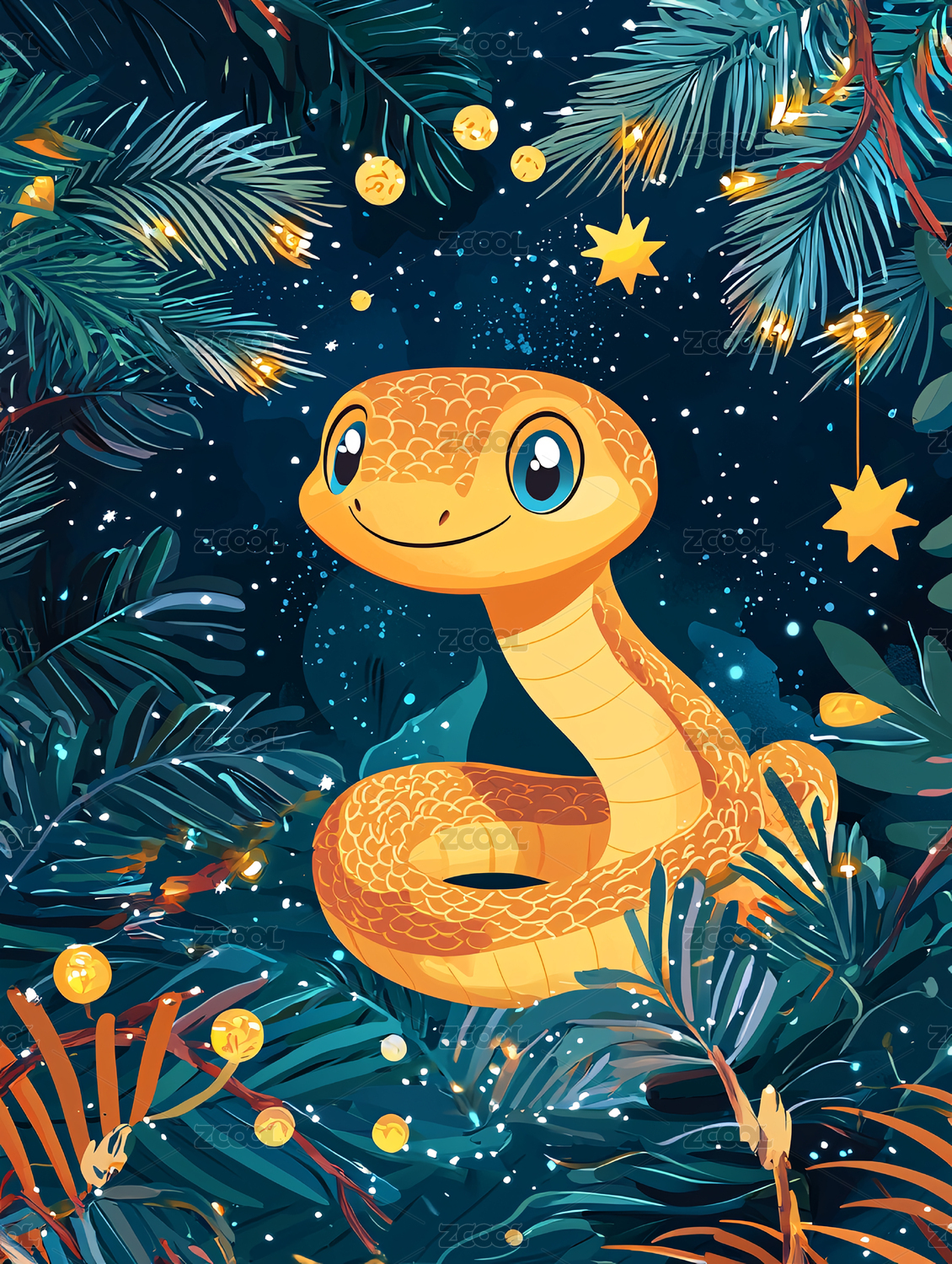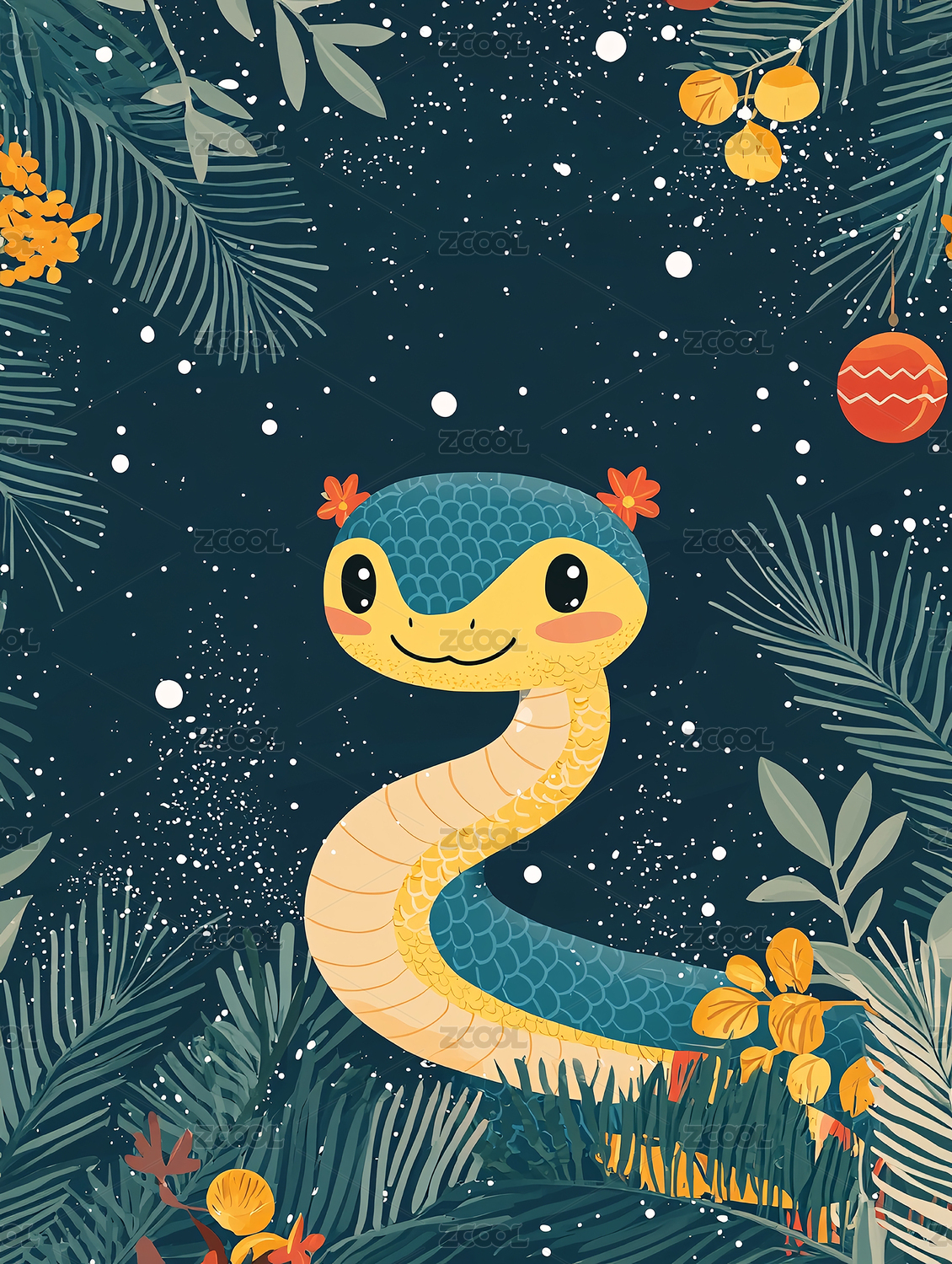 插画,动物,节日,卡通,可爱,蛇,蛇年,圣诞节,圣诞帽,手绘