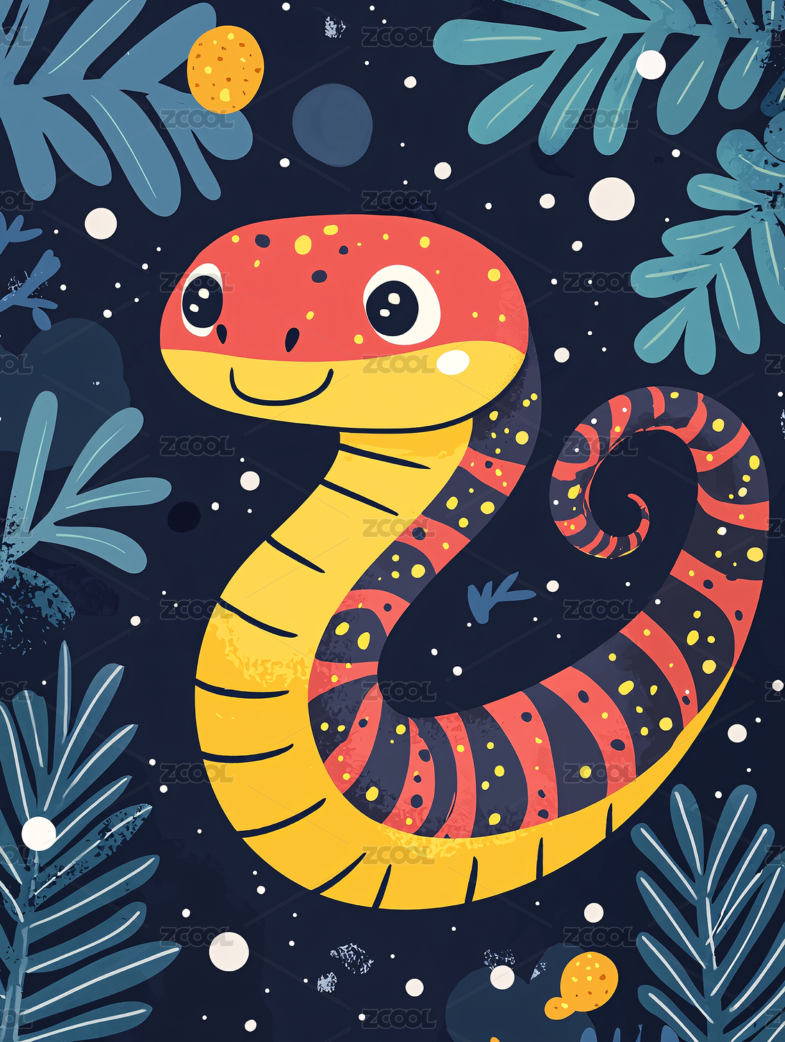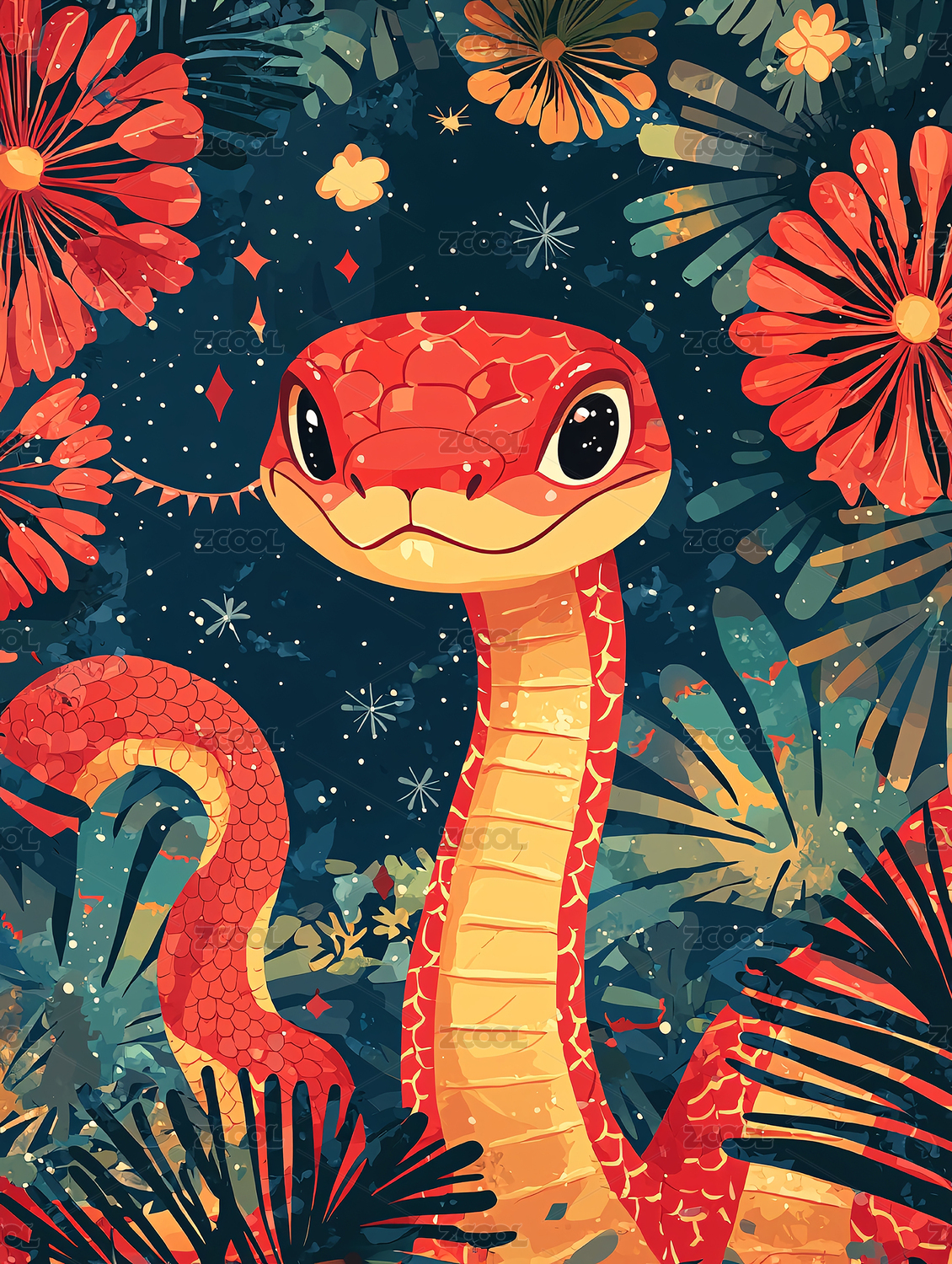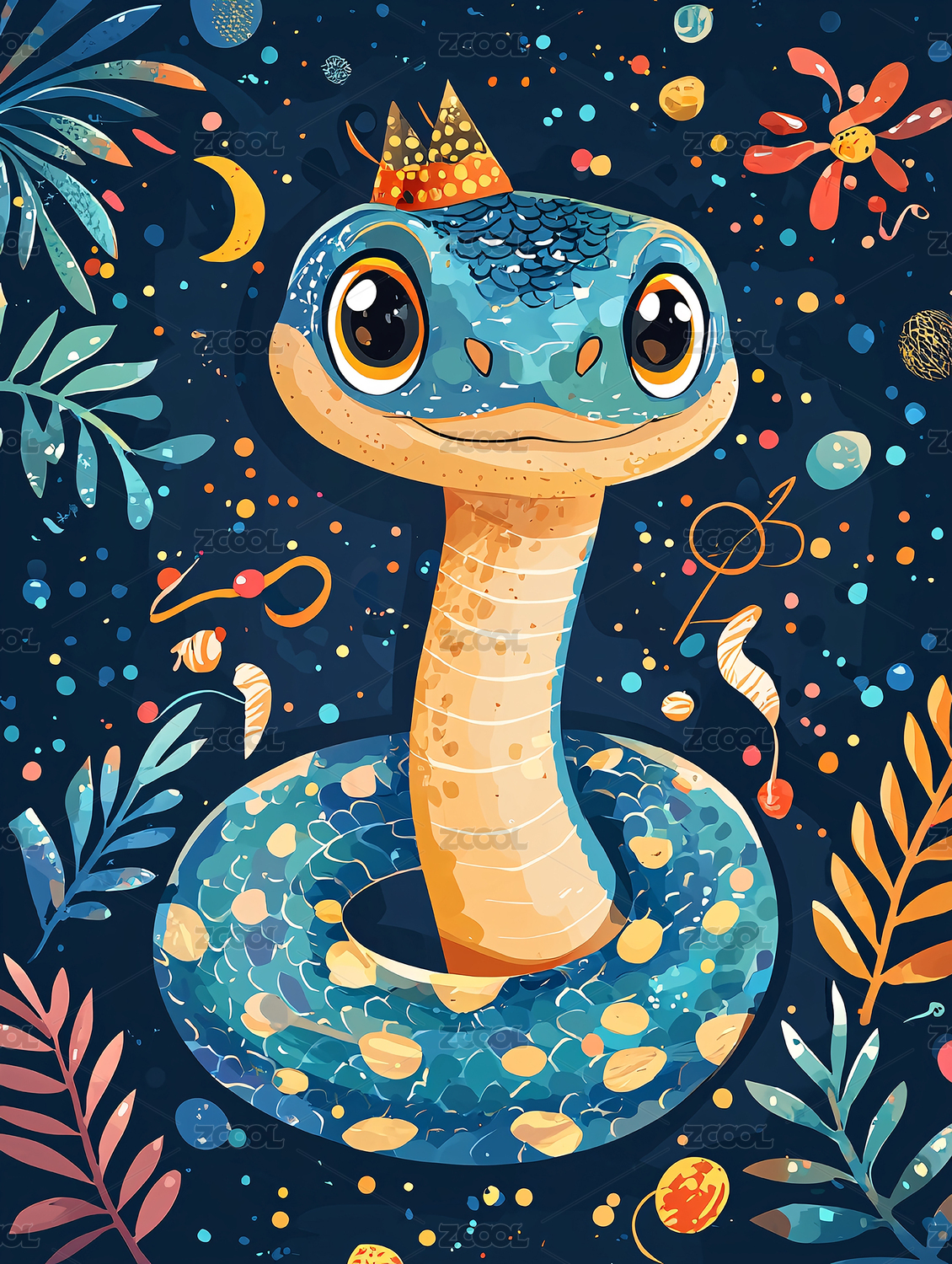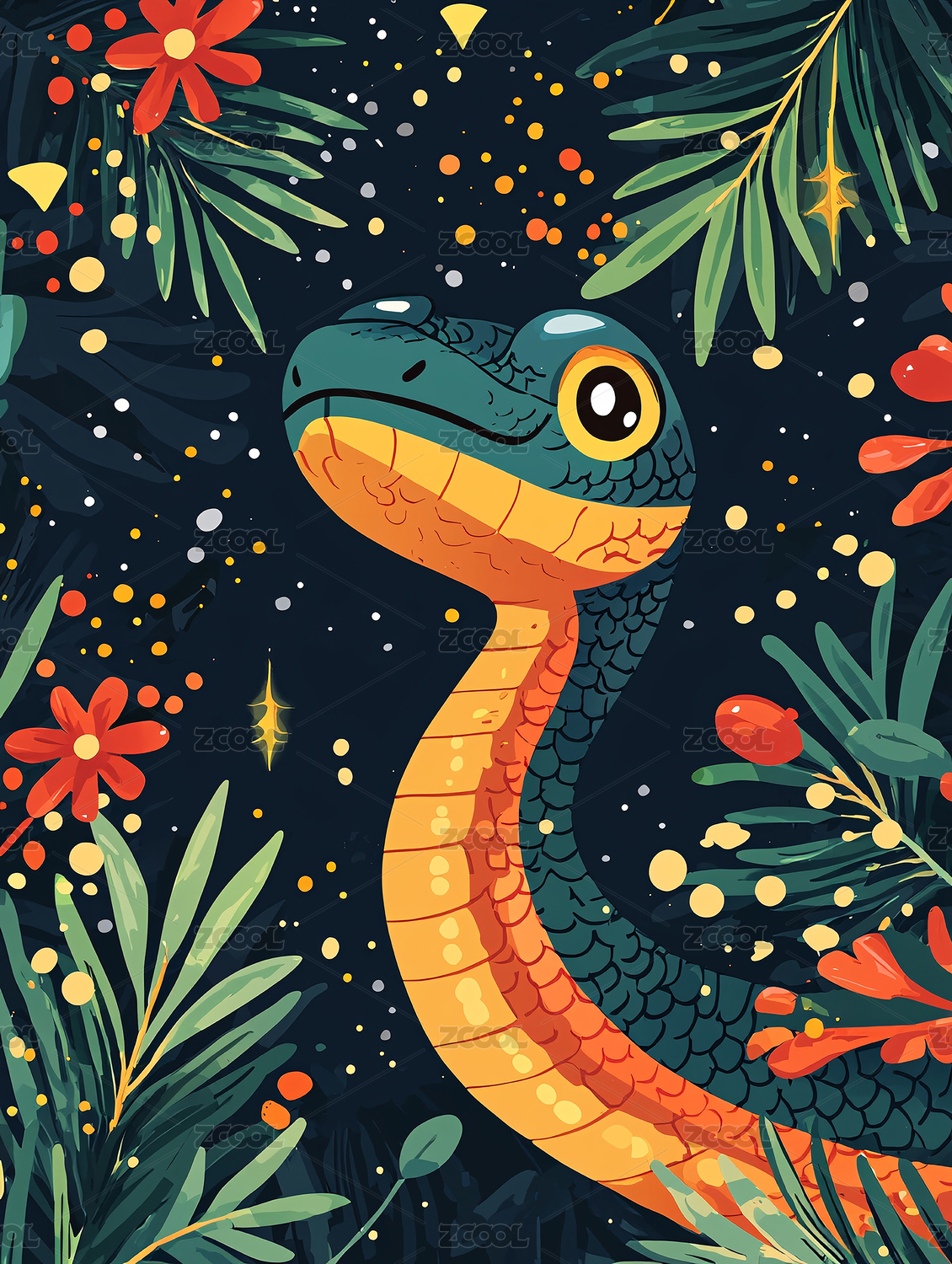插画,动物,节日,卡通,可爱,蛇,蛇年,圣诞节,圣诞帽,手绘