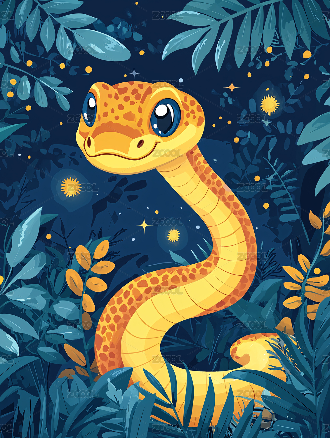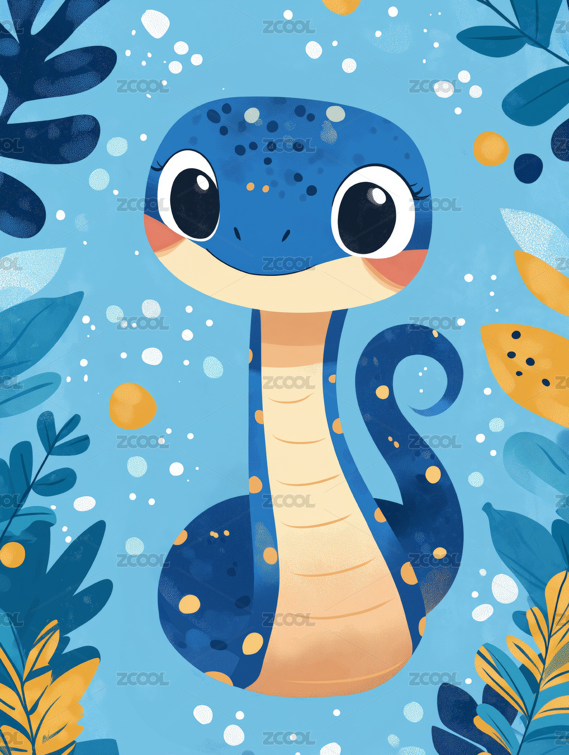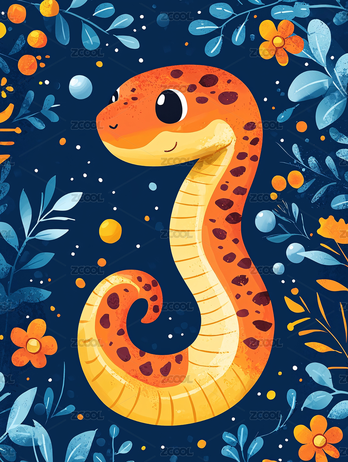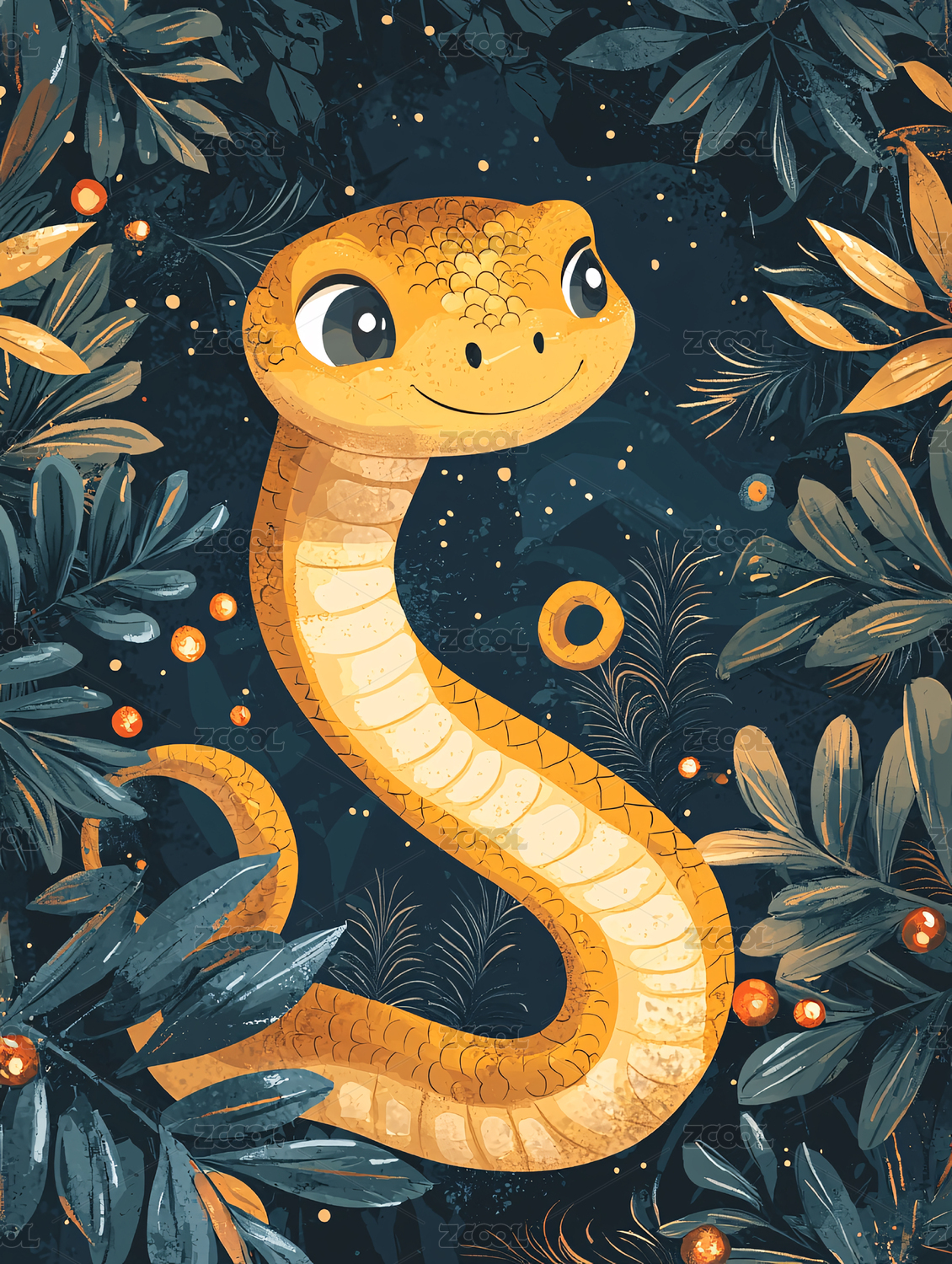 插画,动物,节日,卡通,可爱,蛇,蛇年,圣诞节,圣诞帽,手绘