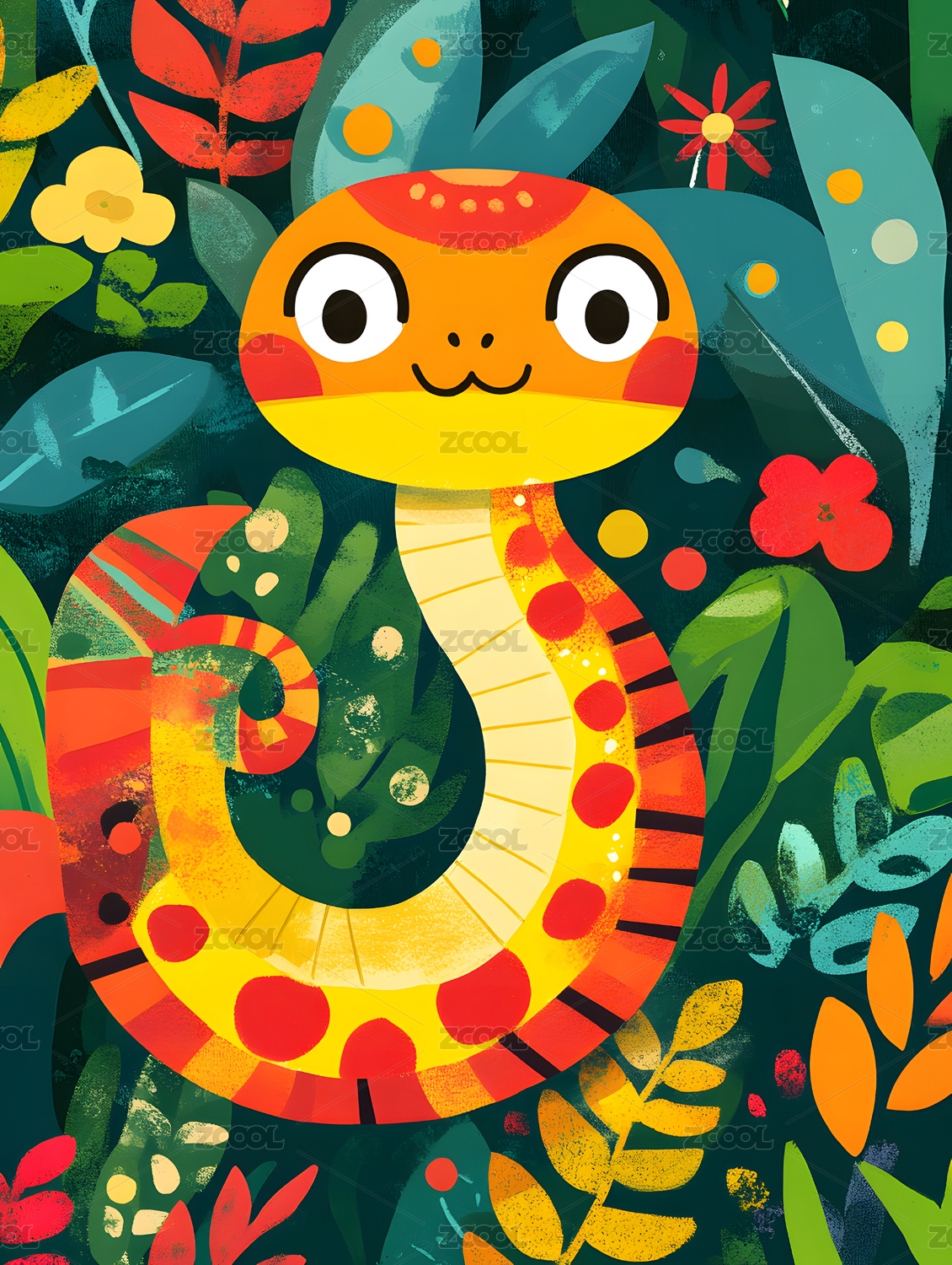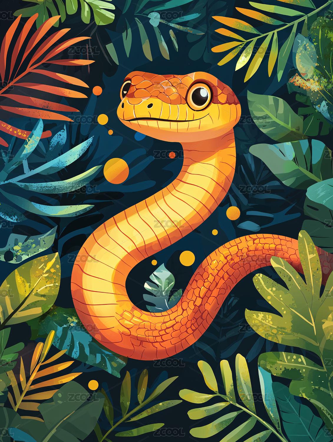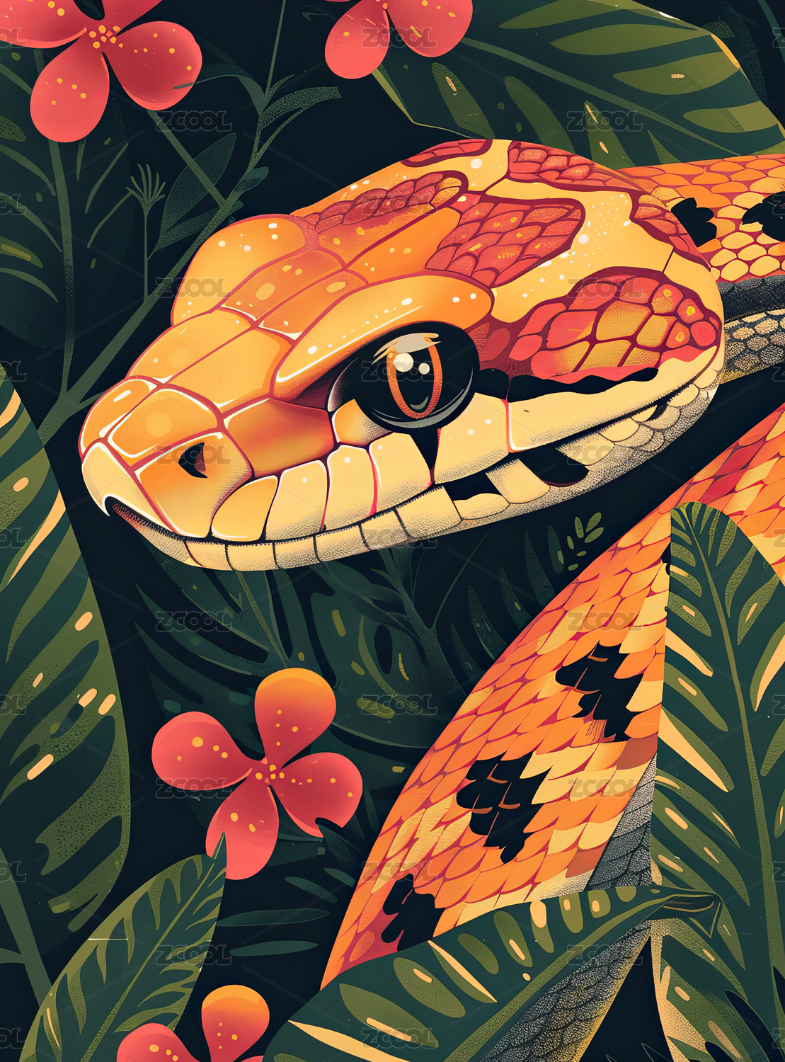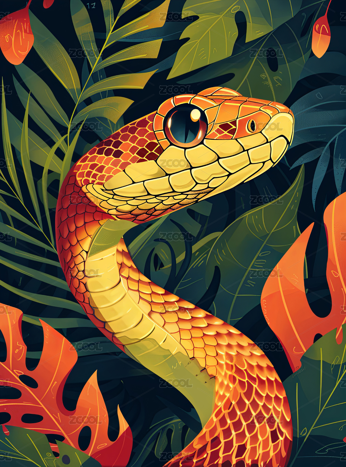 平面插画蛇与自然