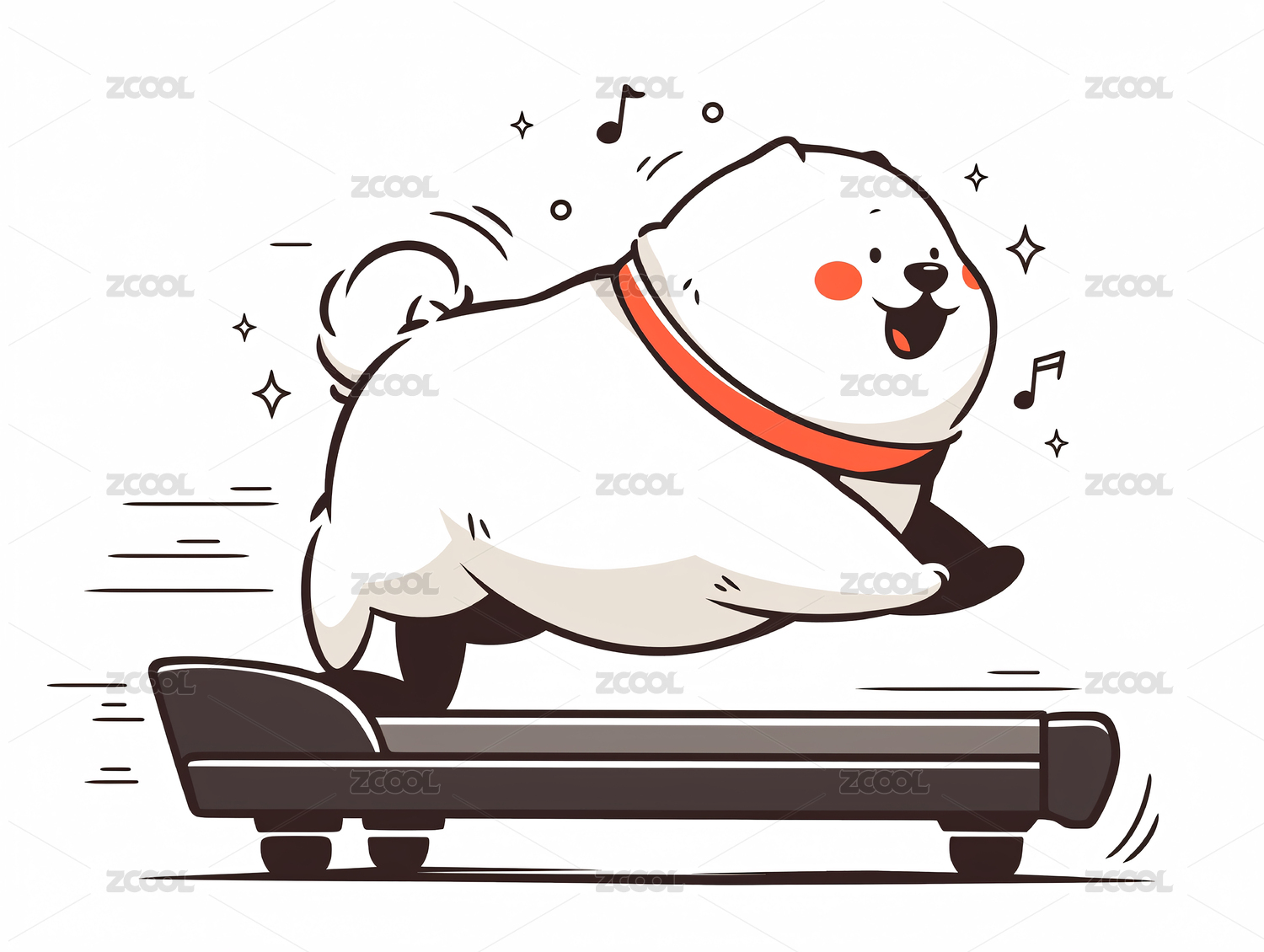 在跑步机上运动的卡通小狗简洁风格插画图案