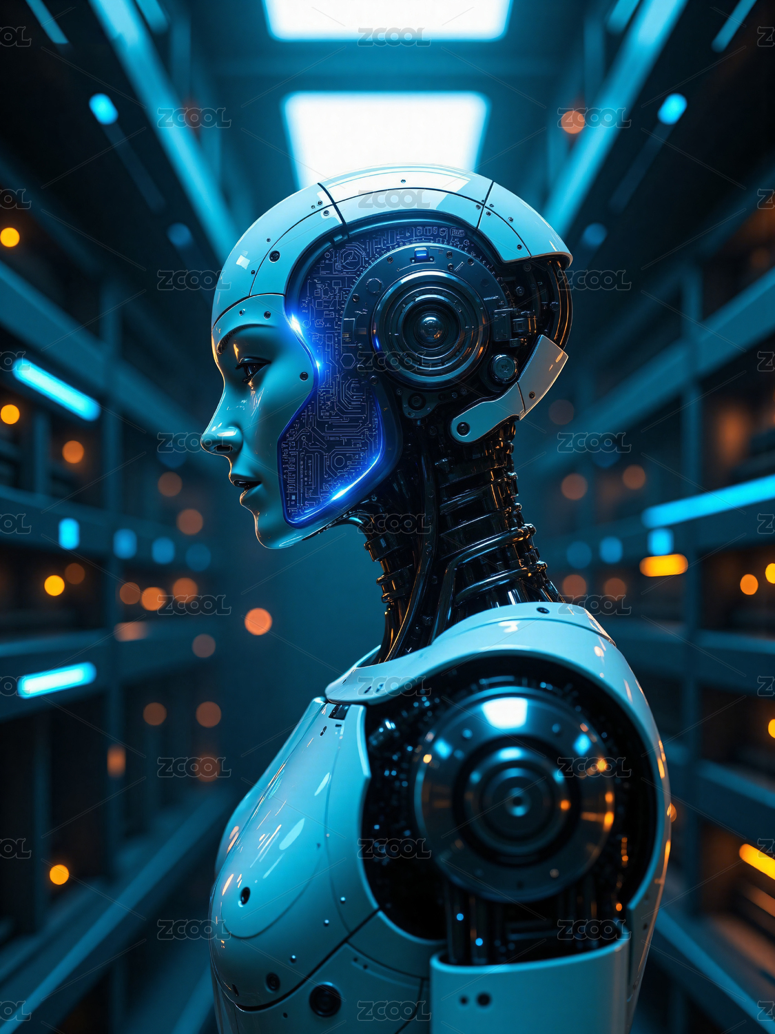 科幻风格智能机器人头部特写