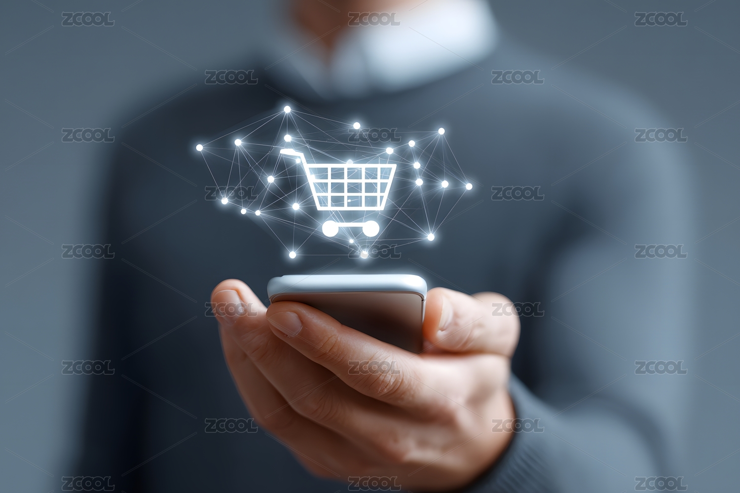 手托着金钱将心仪的物品加入购物车购买消费网络交易概念