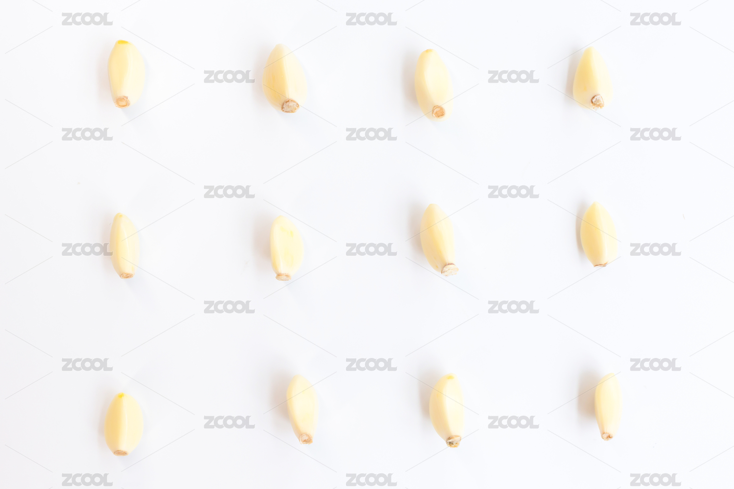白色背景前整齐排列的开心果