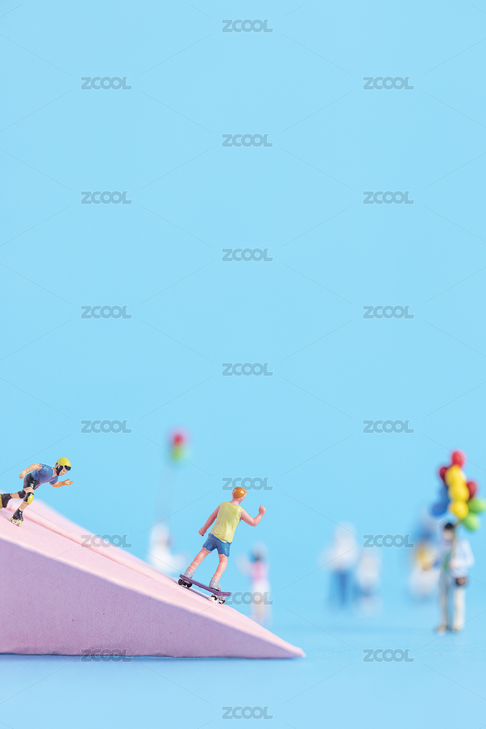 儿童节微缩摄影蓝色背景
