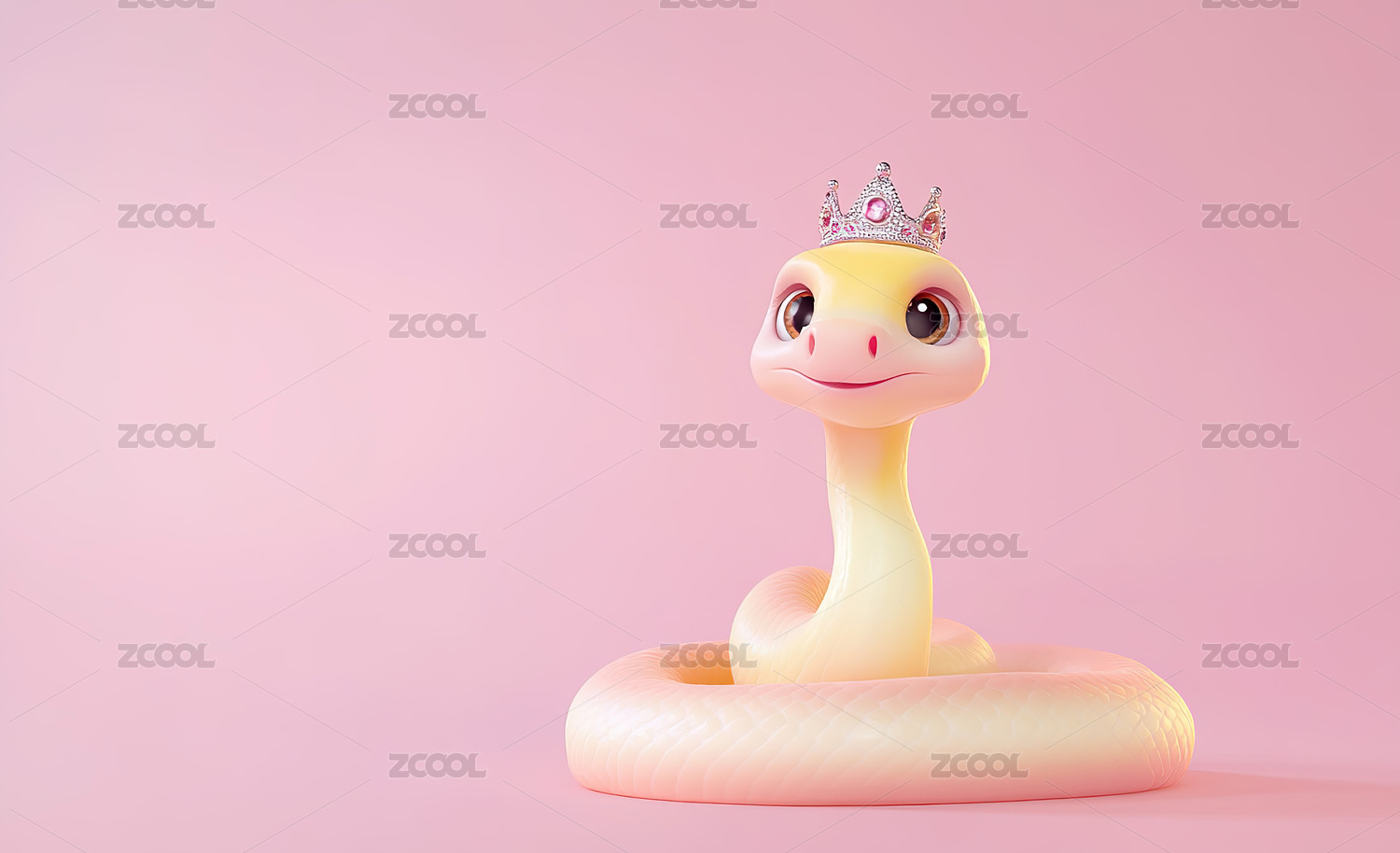 粉色,蛇,皇冠,卡通,3D,斑点,可爱,动物,渲染,简单