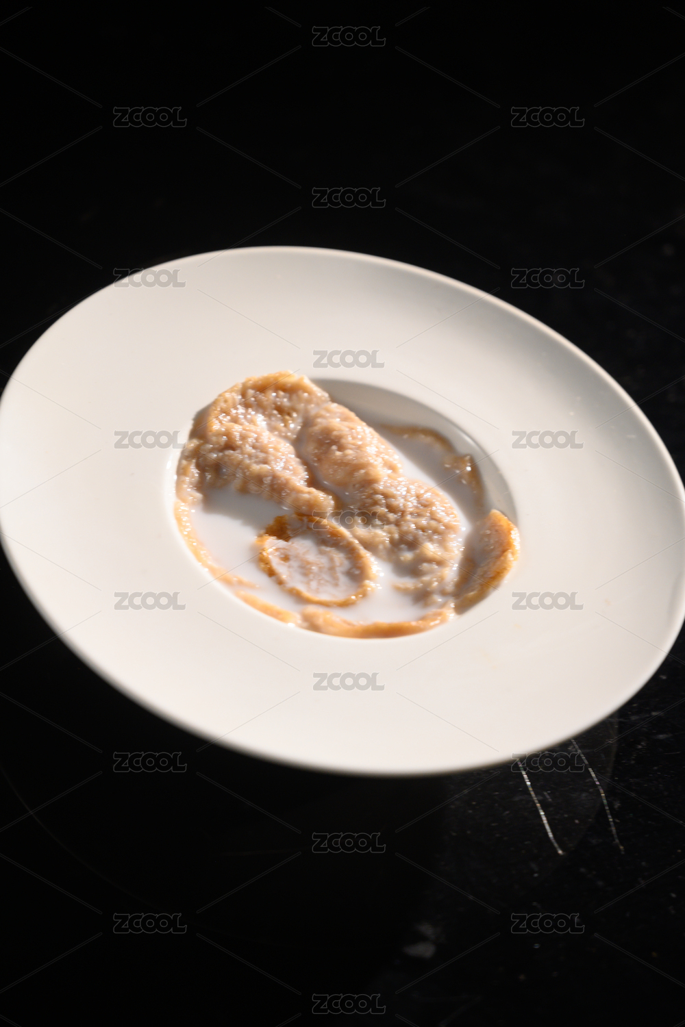 桌面上的碗里美味可口的牛奶荞麦麦片