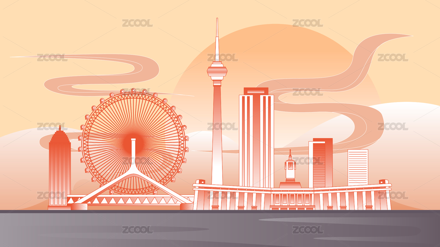 天津,城市,建筑,摩天轮,天津之眼,高楼,旅游,国潮风,国风,剪影