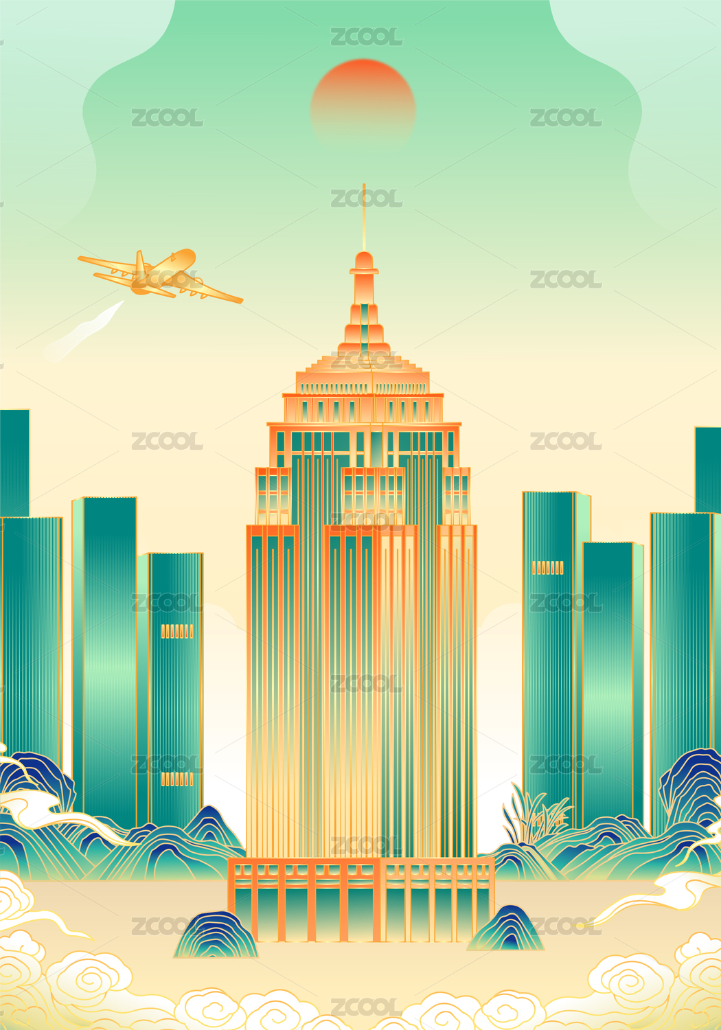 泉州中国风城市高级感渐变大气地标旅游矢量