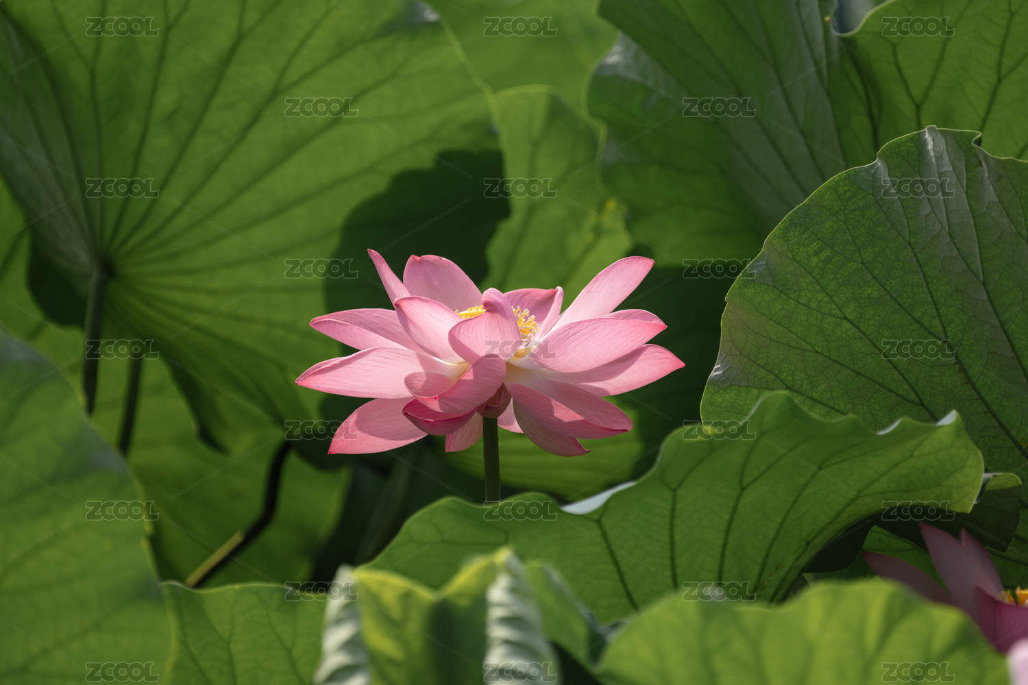 夏季公园荷塘荷叶丛中荷花特写