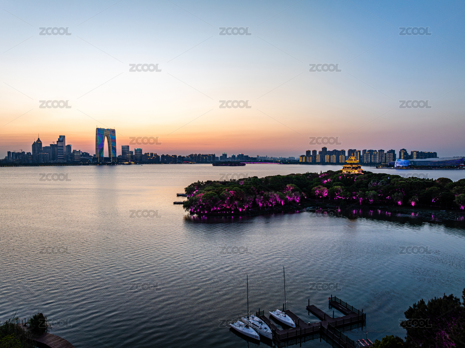 航拍苏州金鸡湖湖东现代城市风光夜景