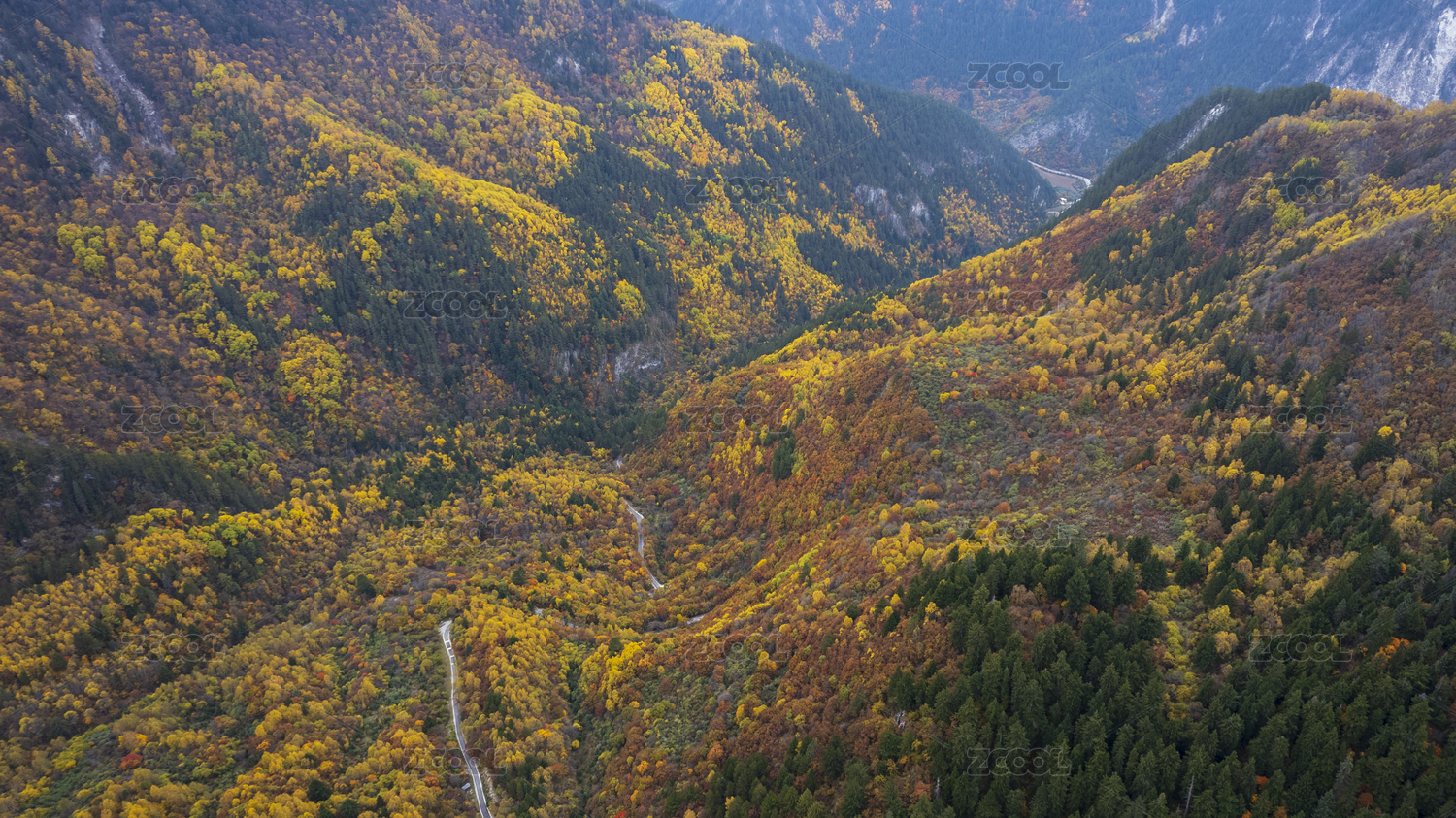 无人机航拍西藏林芝地区高山上的一抹秋景