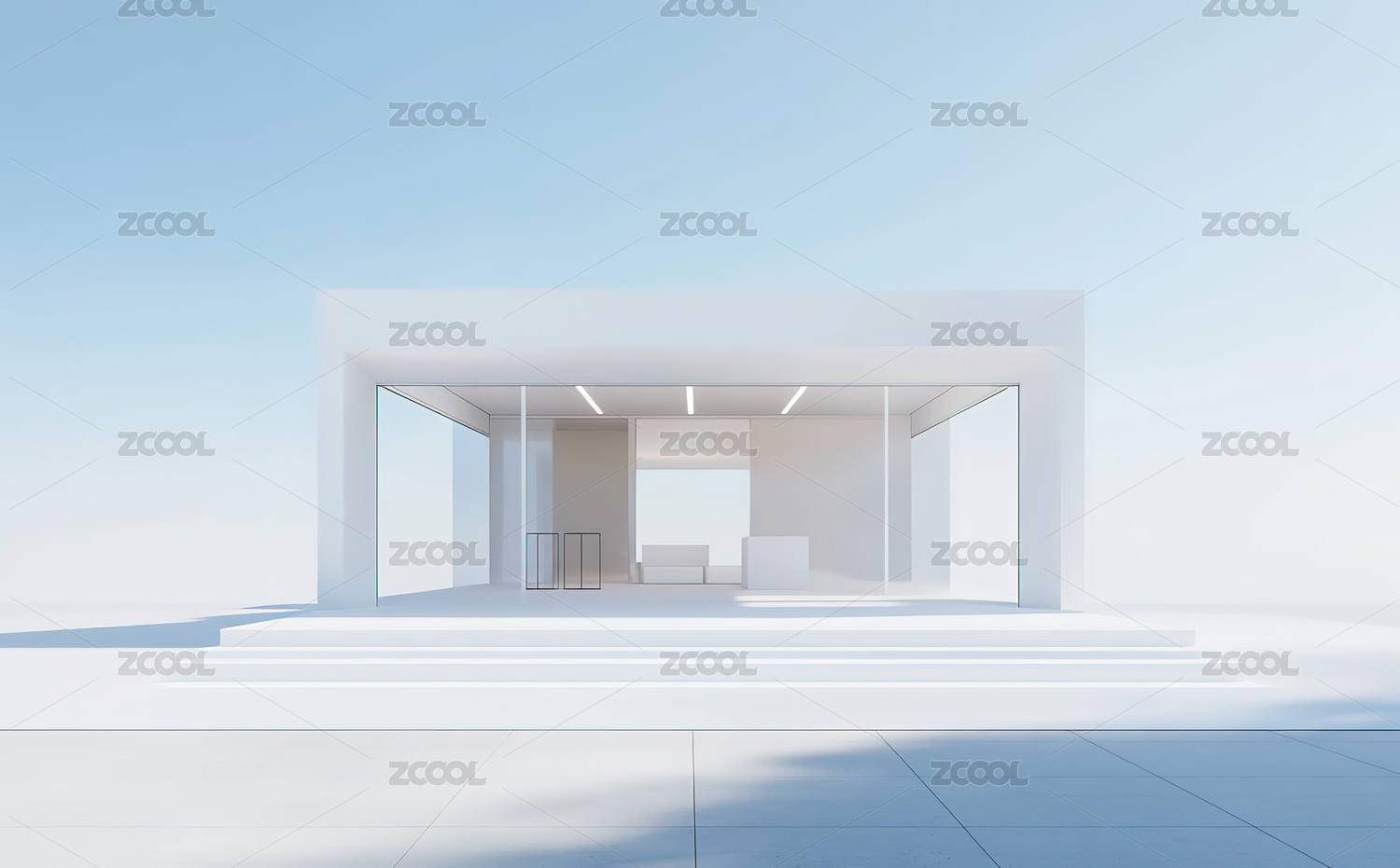 蓝天下的一栋白色墙面搭配黄色点缀简约别墅